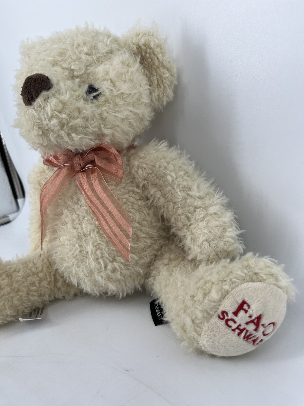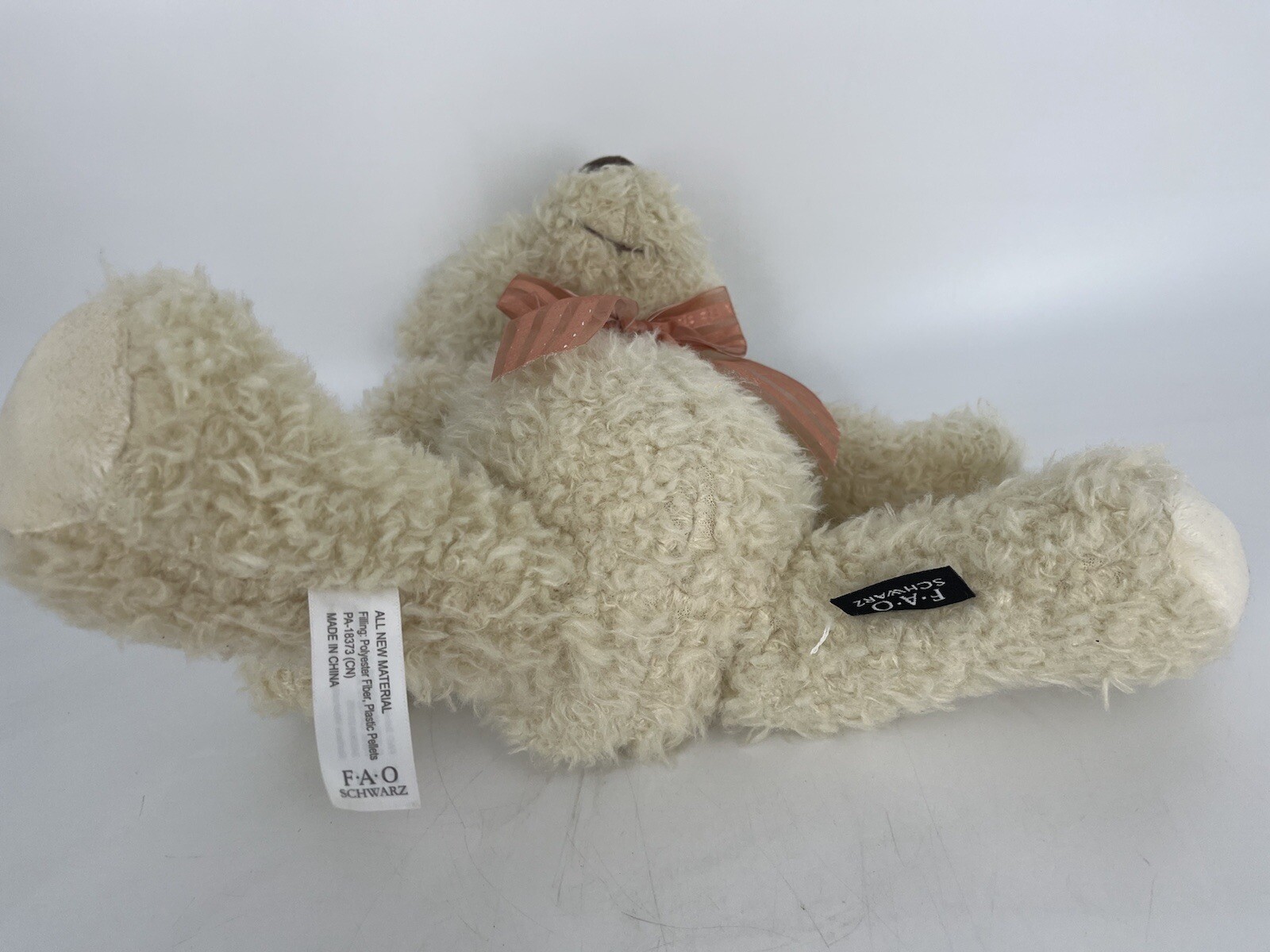 FAO Schwarz Plush Teddy Bear Stuffed Animal Peach Ribbon