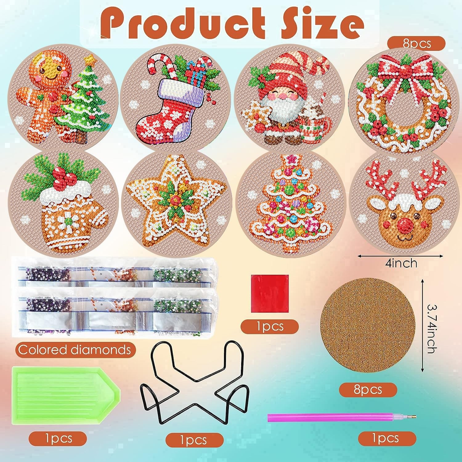 ijbnhd Christmas Diamond Painting Coasters Kits, 8 4X4X0.1, Christmas-1
