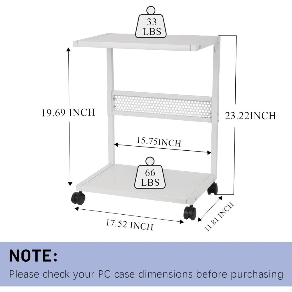 PC Computer Tower Stand 2 Tier CPU Holder with Locking Wheels Rolling Mobile