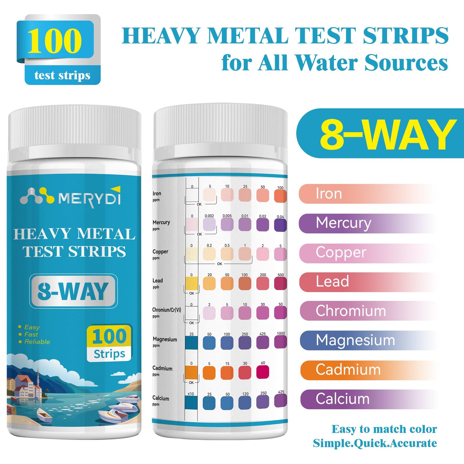 Heavy Metals Water Test Strips 8 Tests - 100ct Home Testing Kit for...