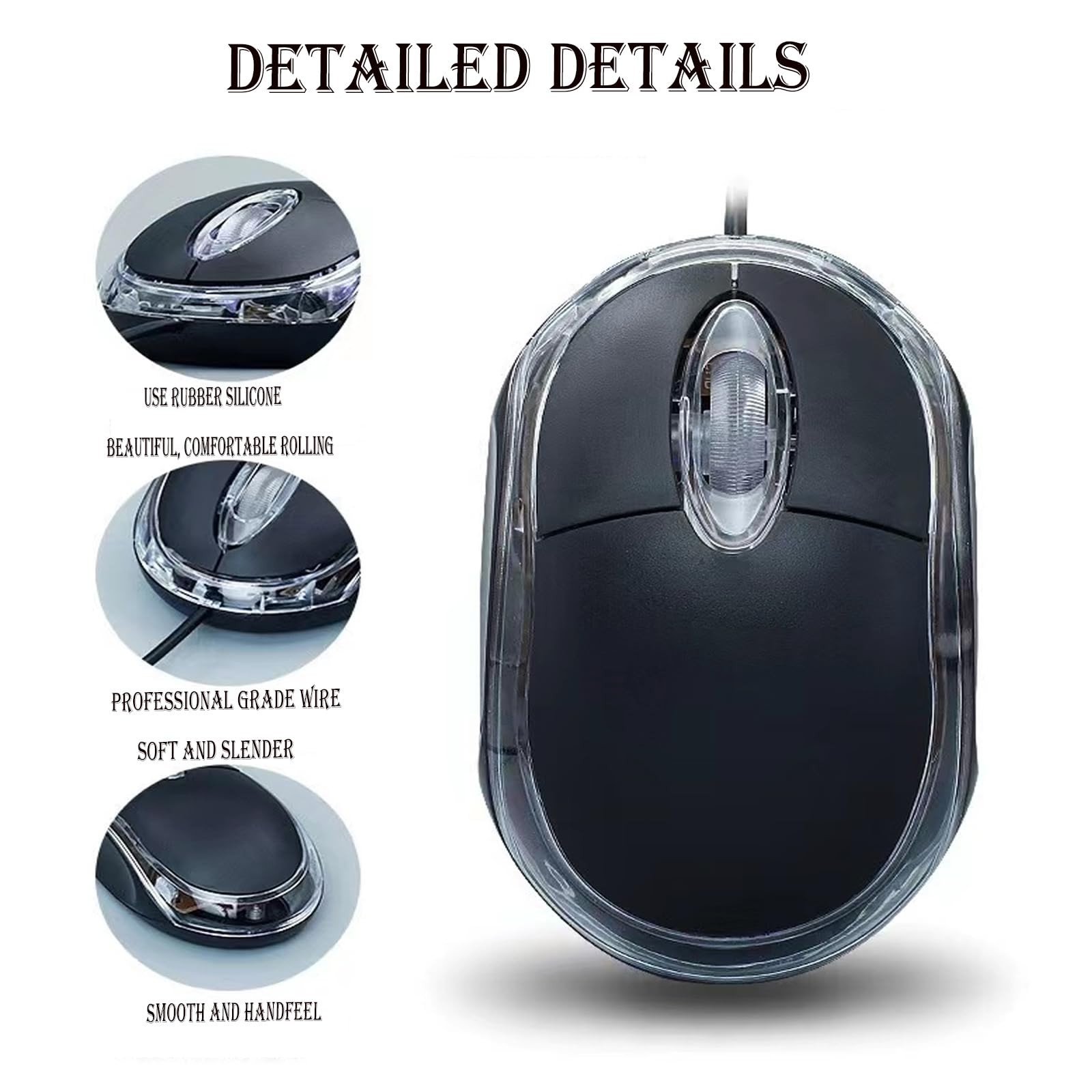Yadojingcn 2 Pack Wired Mini Optical Mouse with Ergonomic 2 pack black