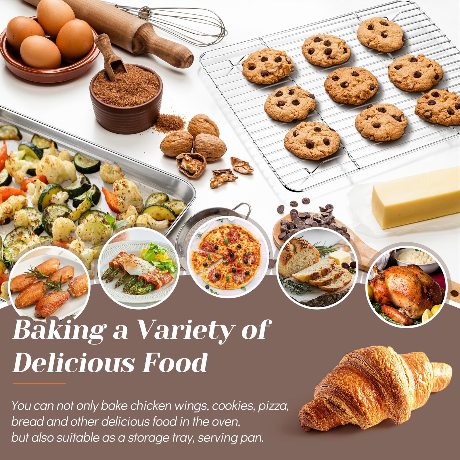 TeamFar Baking Sheet with Rack Set 2 Pans 2 16'' x 12'' x1'', Silver
