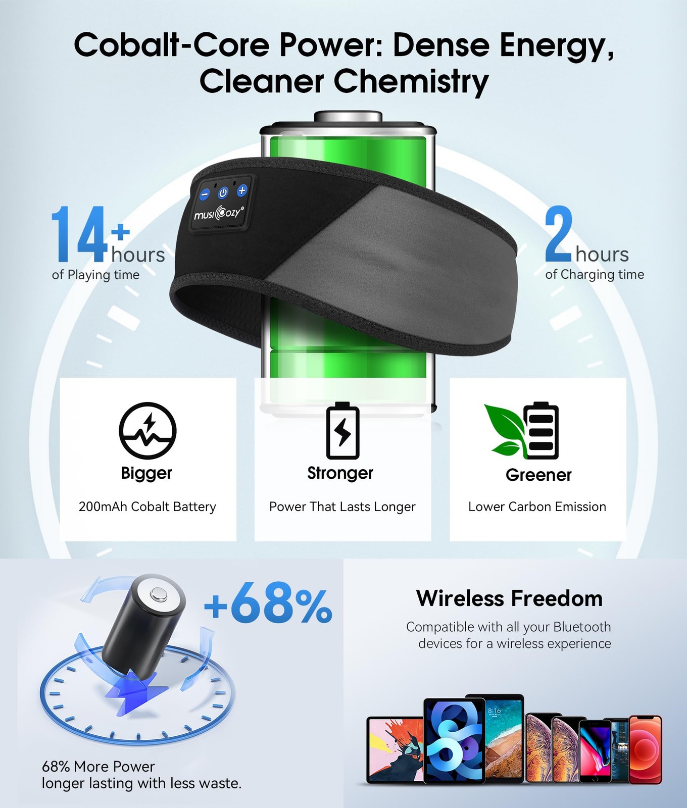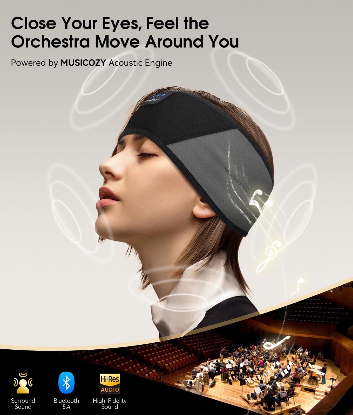 MUSICOZY Sleep Headphones Bluetooth 5.4 Headband, One Size, Gray Black