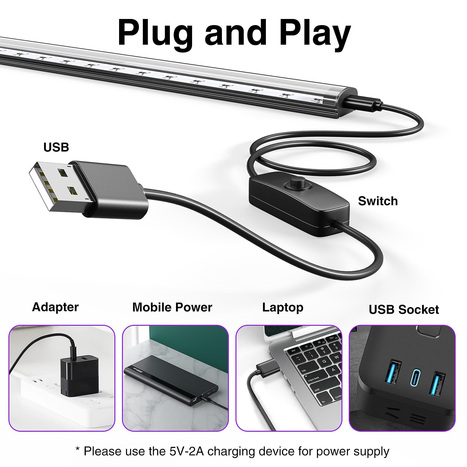 как выглядит Onforu 4 Pack 10W LED Black Light Bar, 1ft, USB Blacklight Tube, фото