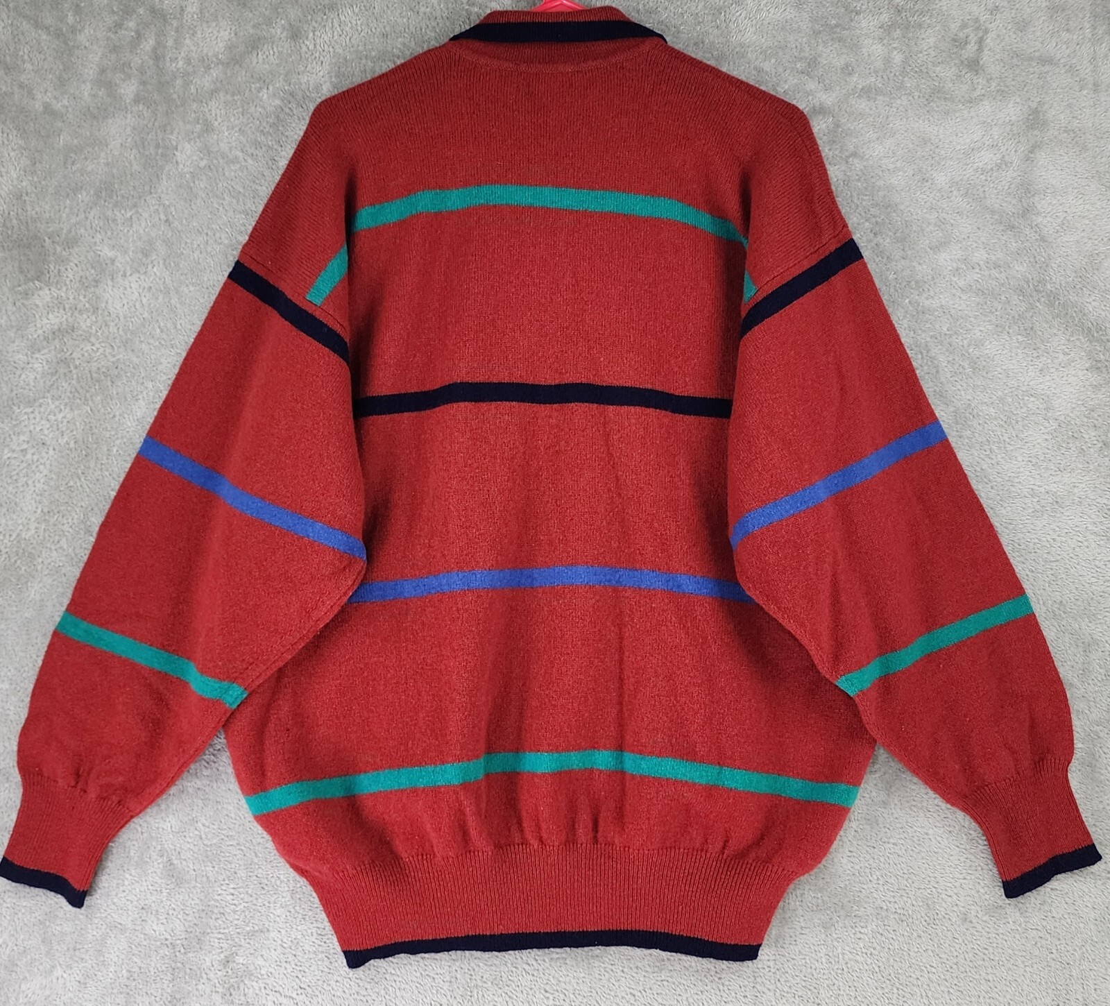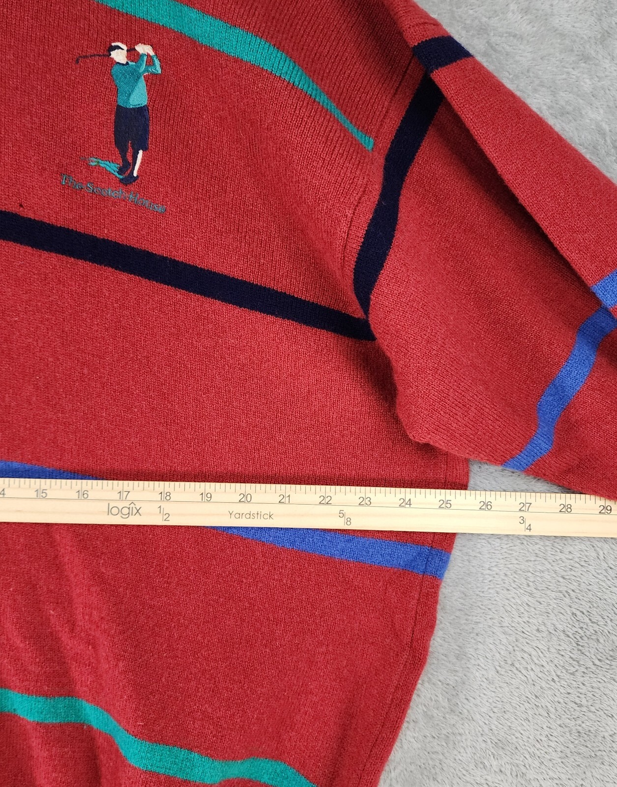 как выглядит The Scotch House Sweater Mens Large Red Striped Embroidered Golfer Vintage Wool фото