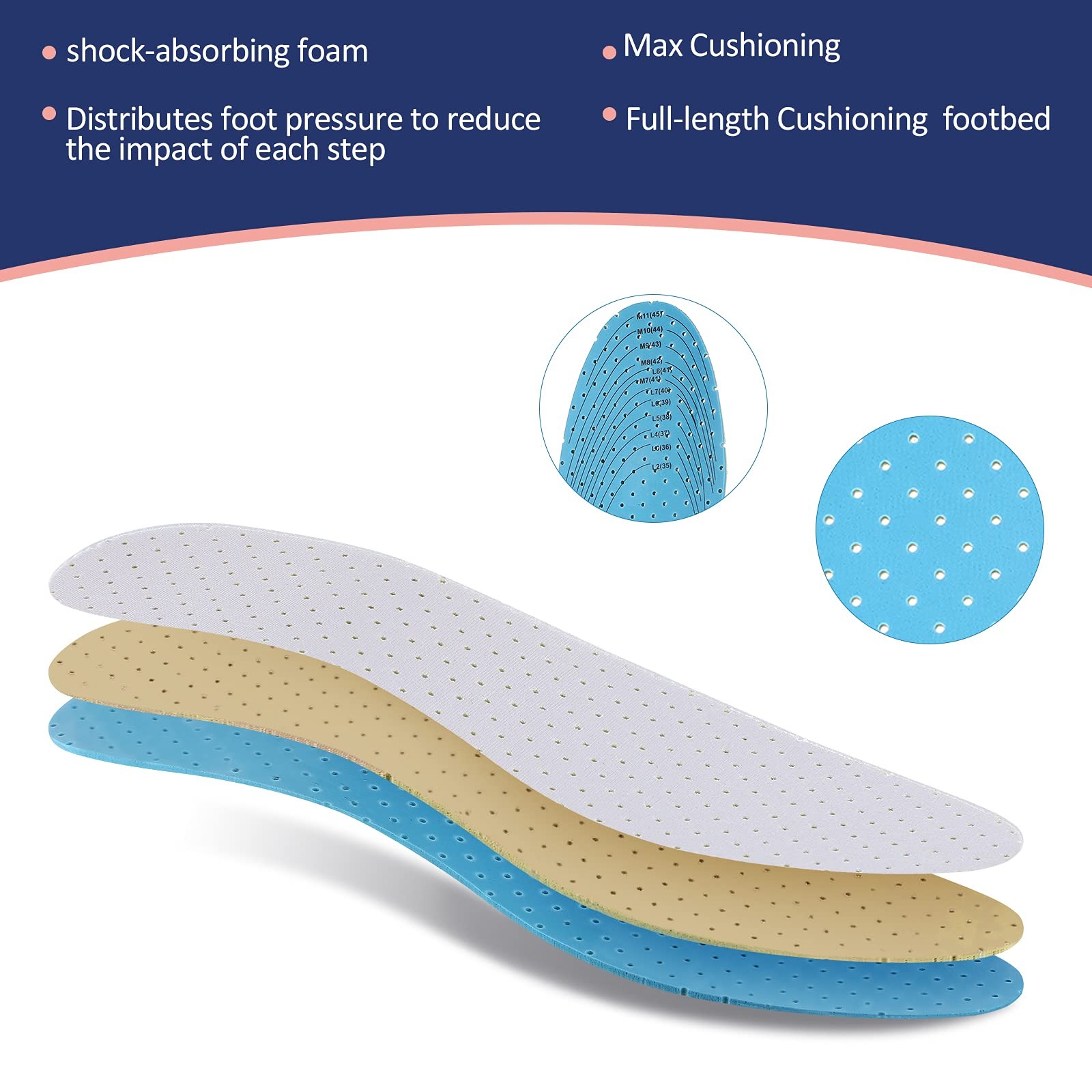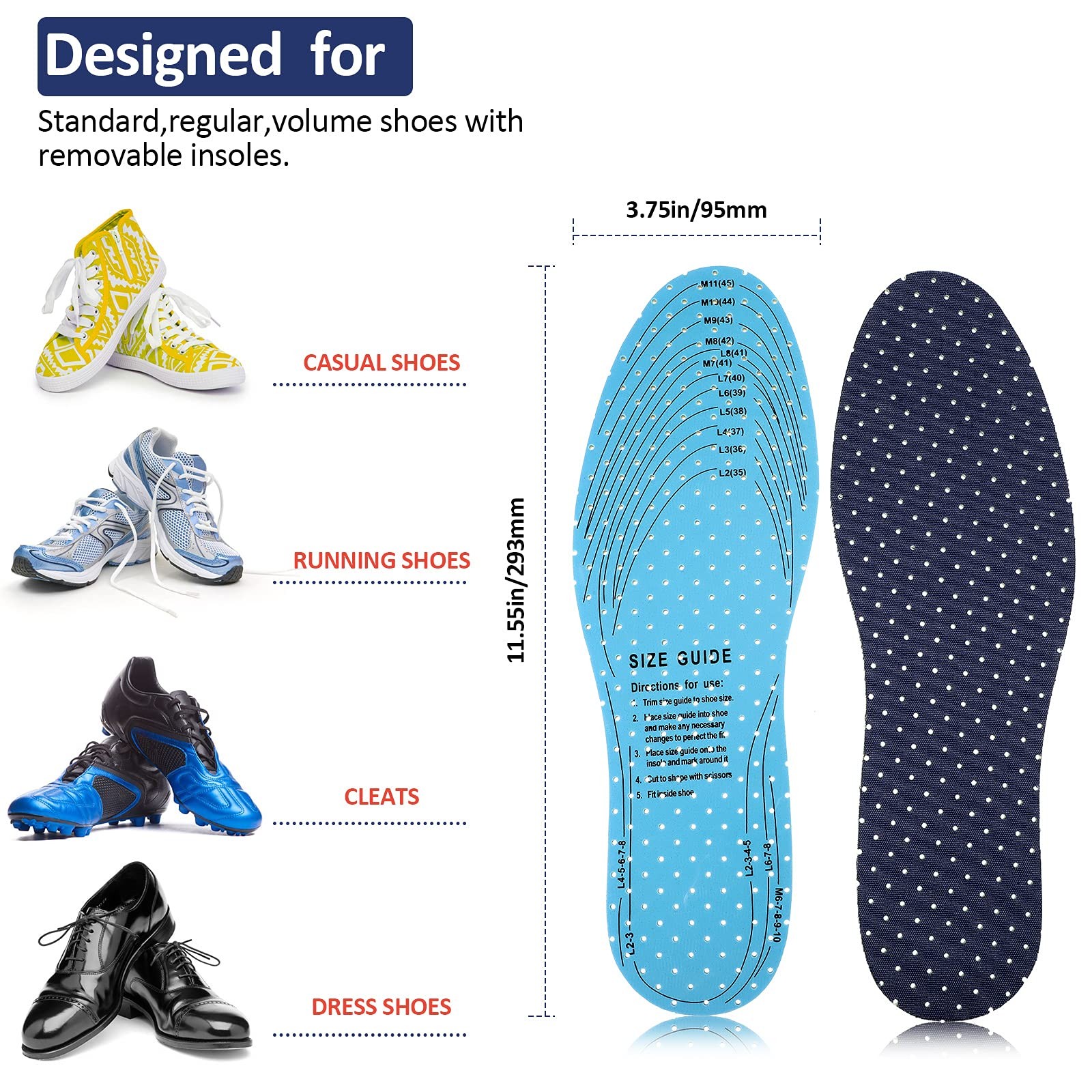 6 Pairs Shoe Insoles Women Thin Breathable 3.8 x 11.5 Inch, Simple Colors