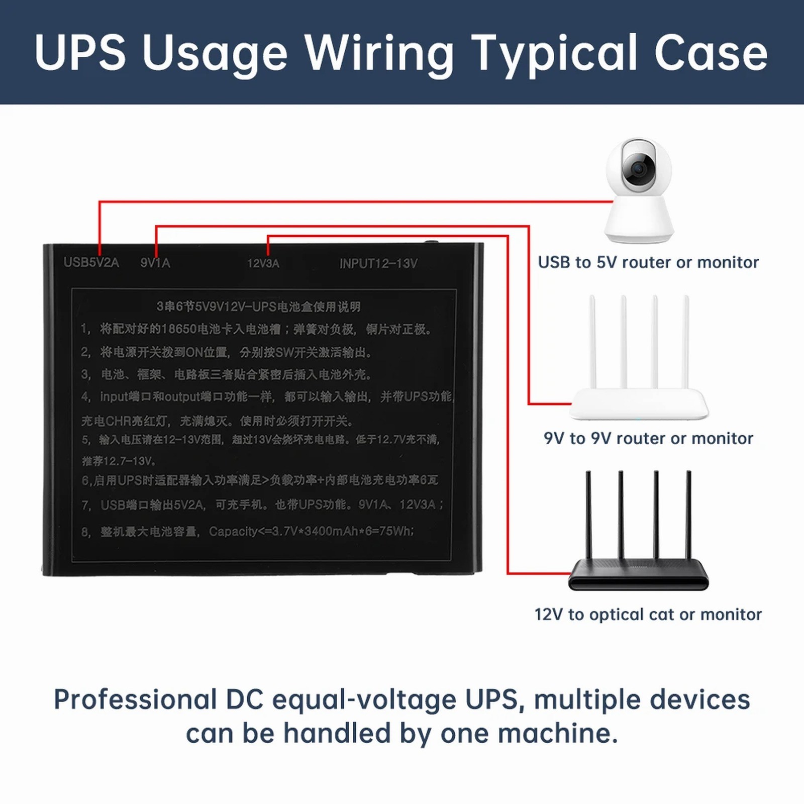 DIY 6x18650 Battery UPS Power Supply Box with 5V USB, 9V 12V Outputs Battery