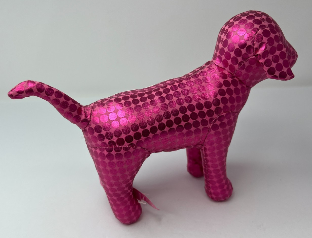 как выглядит Victorias Secret Pink 6" Plush PEACE Dog Shiny Polka Dots фото