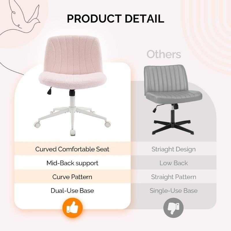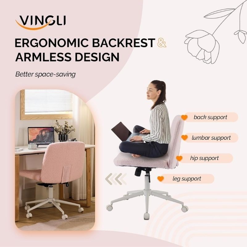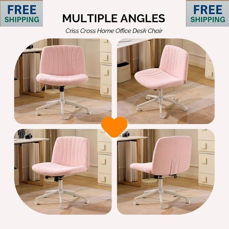 как выглядит Fabric Criss Cross Chair with Wheels Office Chair Wide Armless Desk Chair фото