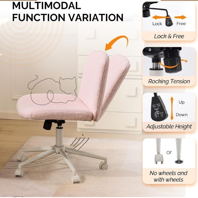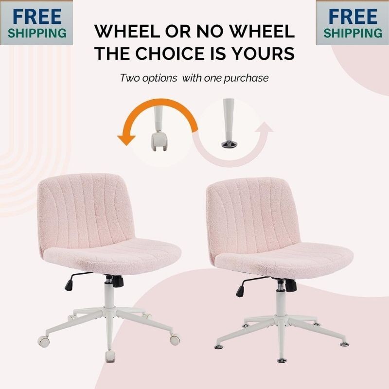 Fabric Criss Cross Chair with Wheels Office Chair Wide Armless Desk Chair