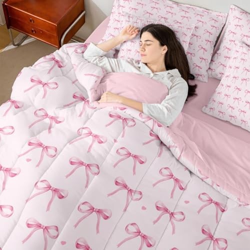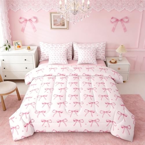 Girly Pink Bow Bedding Set, Princess Bowknot Bed in A Twin Mint Pink