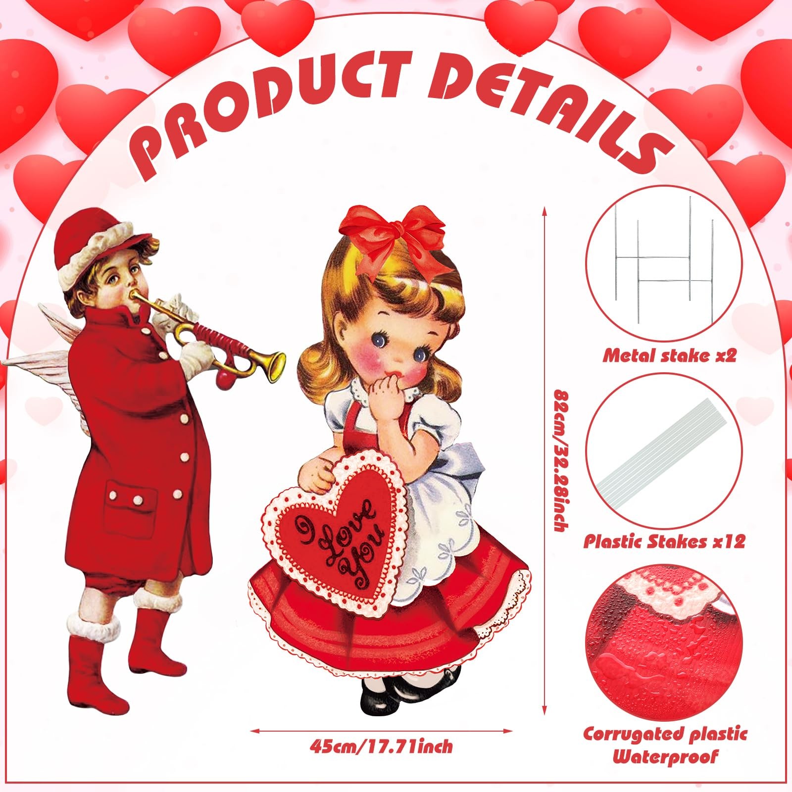 2 Pcs Valentine's Day Yard Signs Valentines Day Outdoor Decorations with Stak...