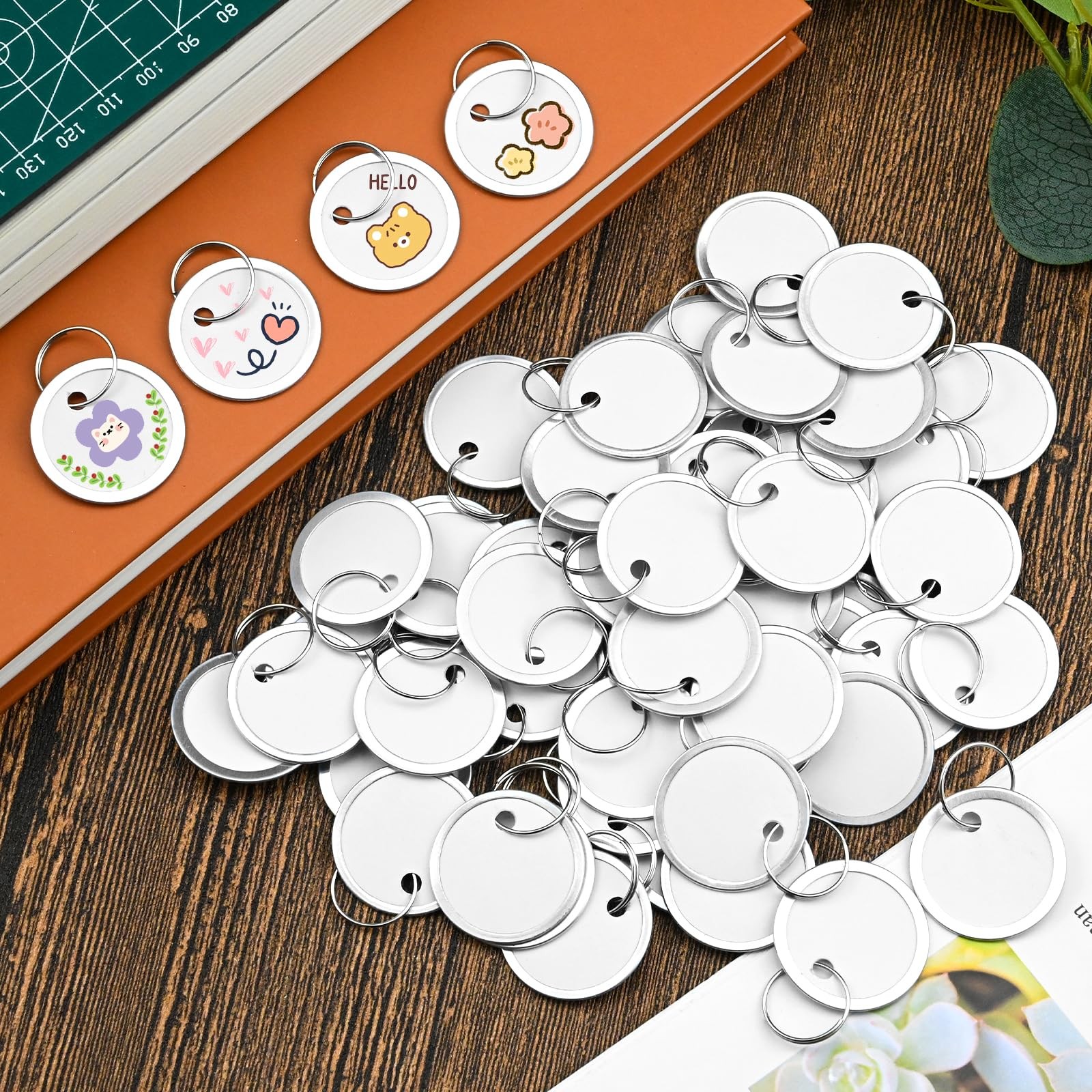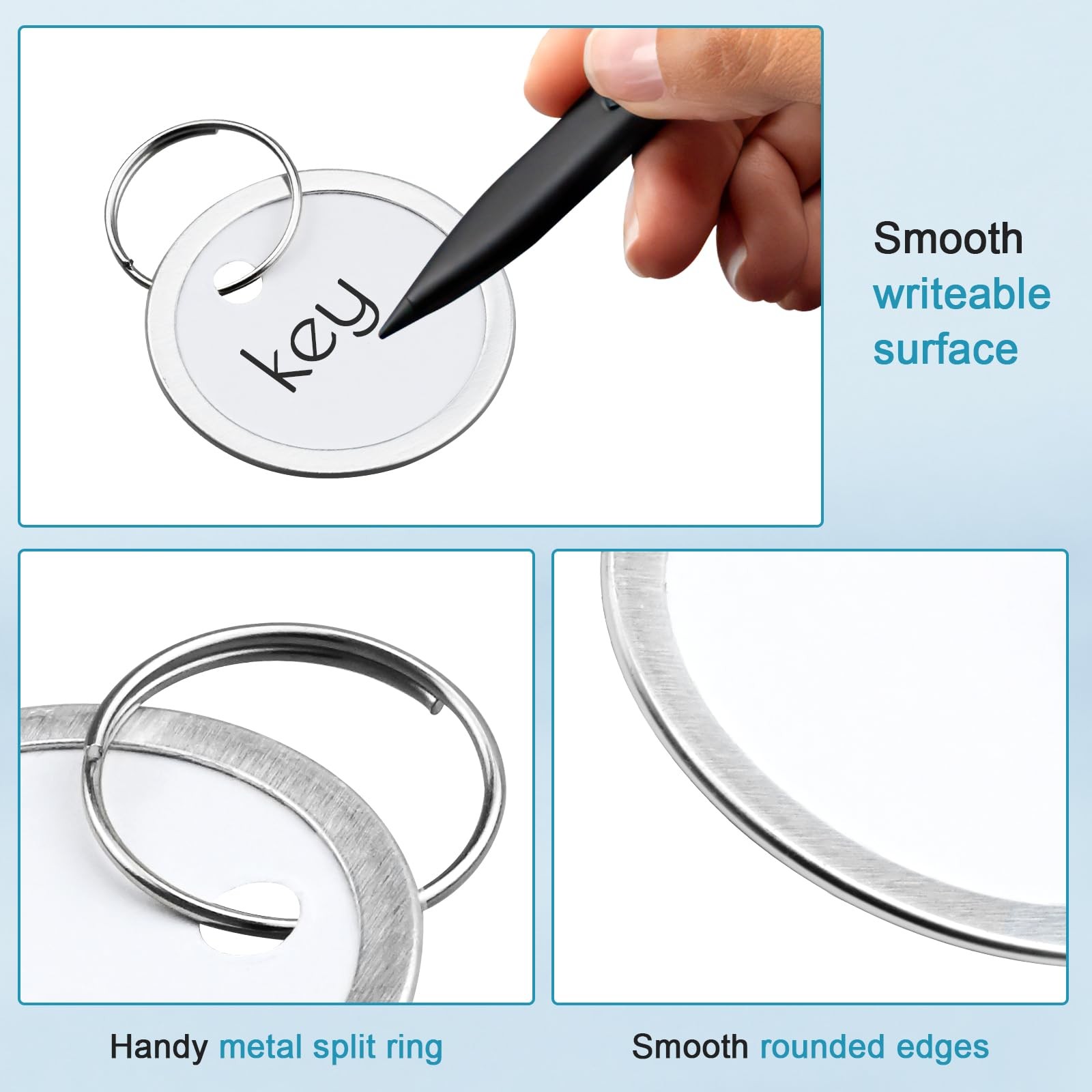 как выглядит 120 PCS Metal Rim Key Tags 1.22 Inches Round Paper Tags with Split Rings Doub... фото
