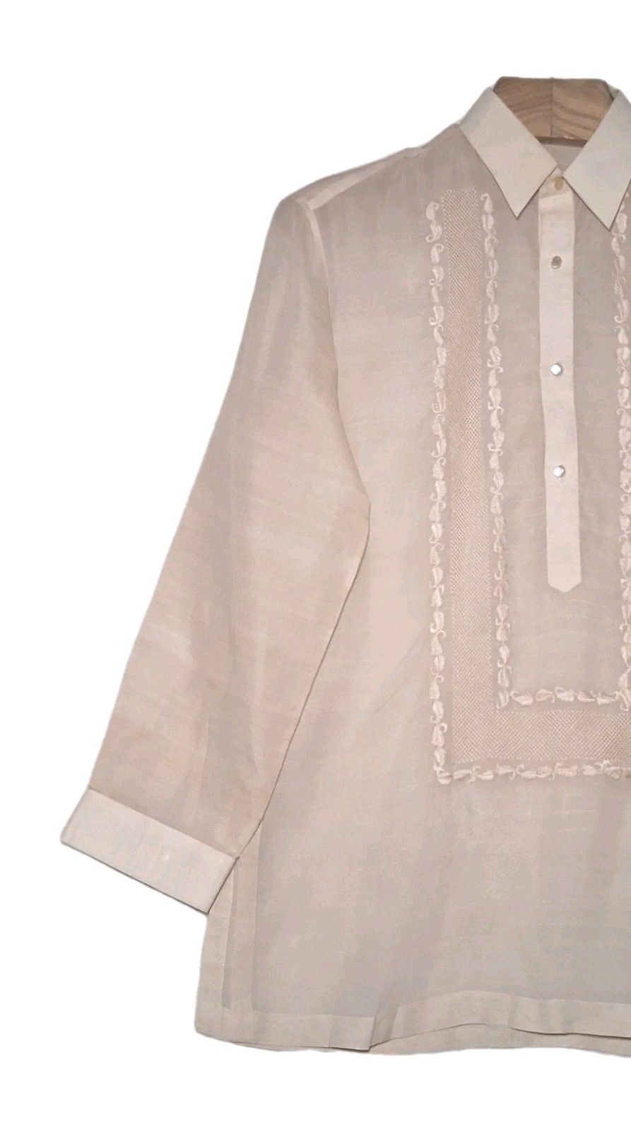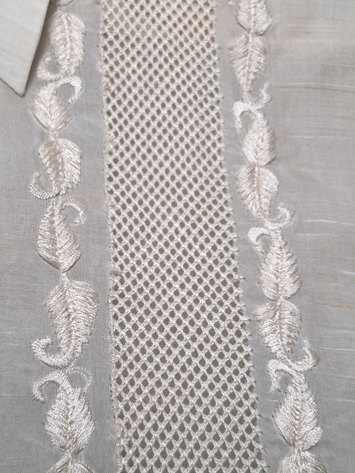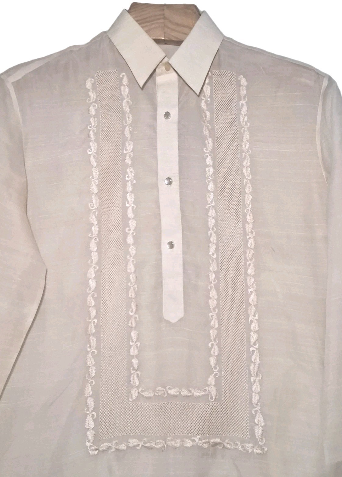Vtg Prince Albert Barong Tagalog Filipino Shirt Mens Large Tan Hand Embroidered