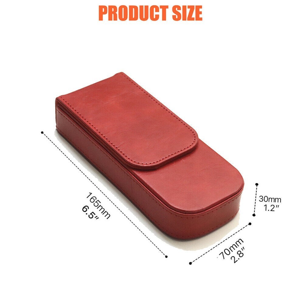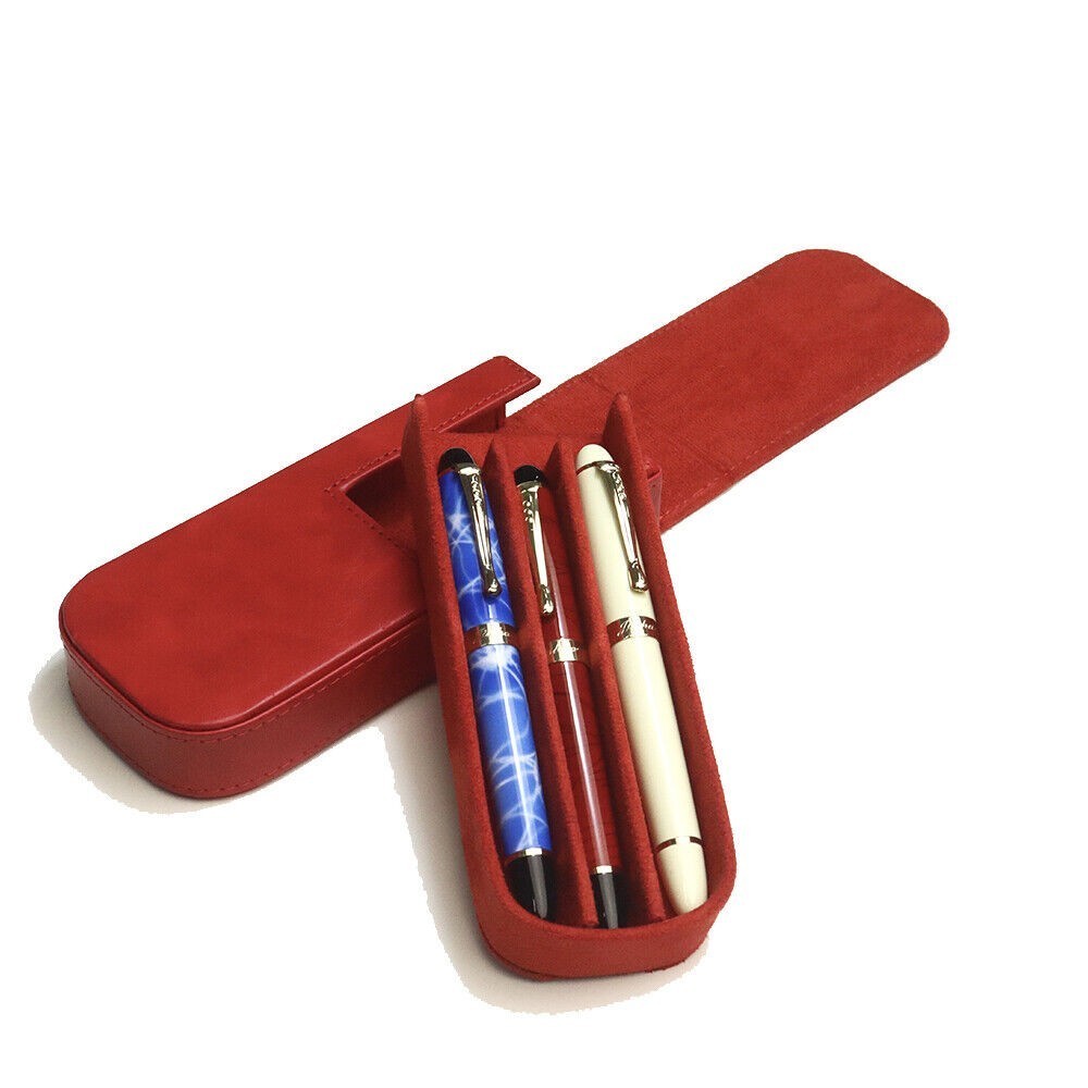 • Leather 3 Slots Hard Fountain Pen Case Storage Box Removable Pen Tray Red