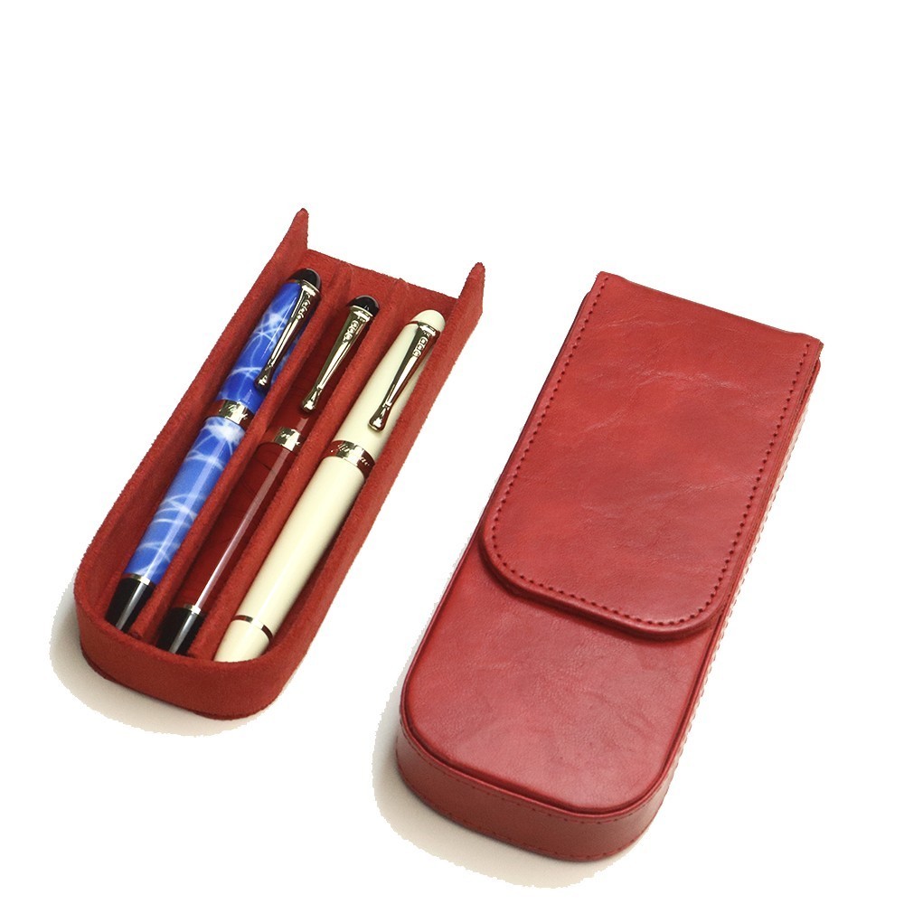 Leather 3 Slots Hard Fountain Pen Case Storage Box Removable Pen Tray Red