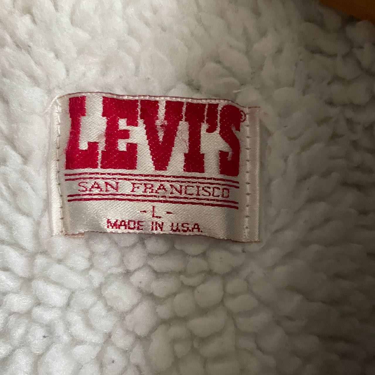 Levi's Sherpa Trucker Jean Jacket Blue Denim Large Made in USA Vintage