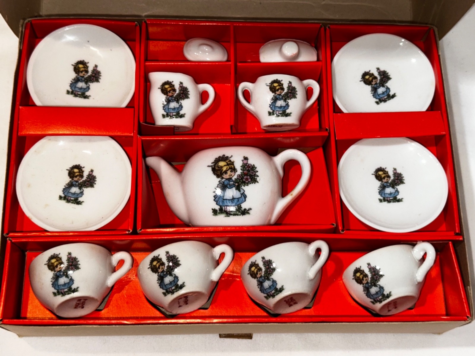 Toy China Tea Set Child Play Little Girl Made In Japan 13 pcs Vintage