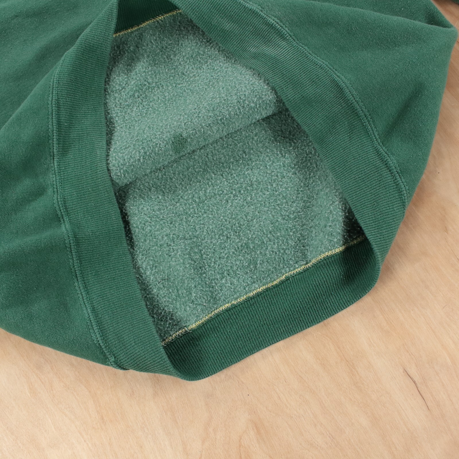 как выглядит vtg 60s usa made FRUIT OF THE LOOM blank green raglan sweatshirt LARGE tag true фото