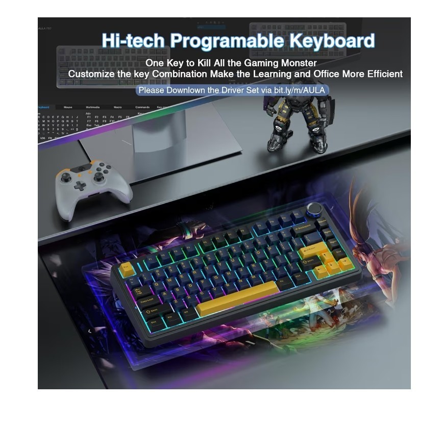 AULA F75 75 Wireless Hot-Swap Mechanical Keyboard RGB Greywood Switches