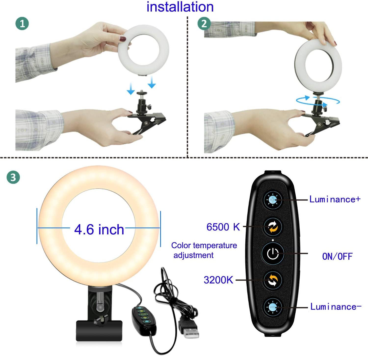 Ring Light Video Conference Lighting Kit 3200K-6500K Dimmable Led Clip on Comput