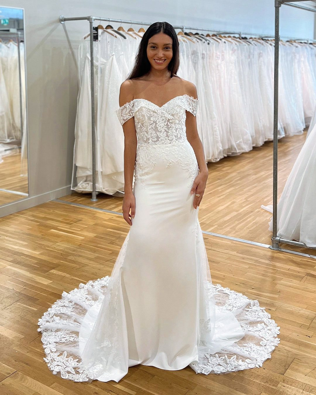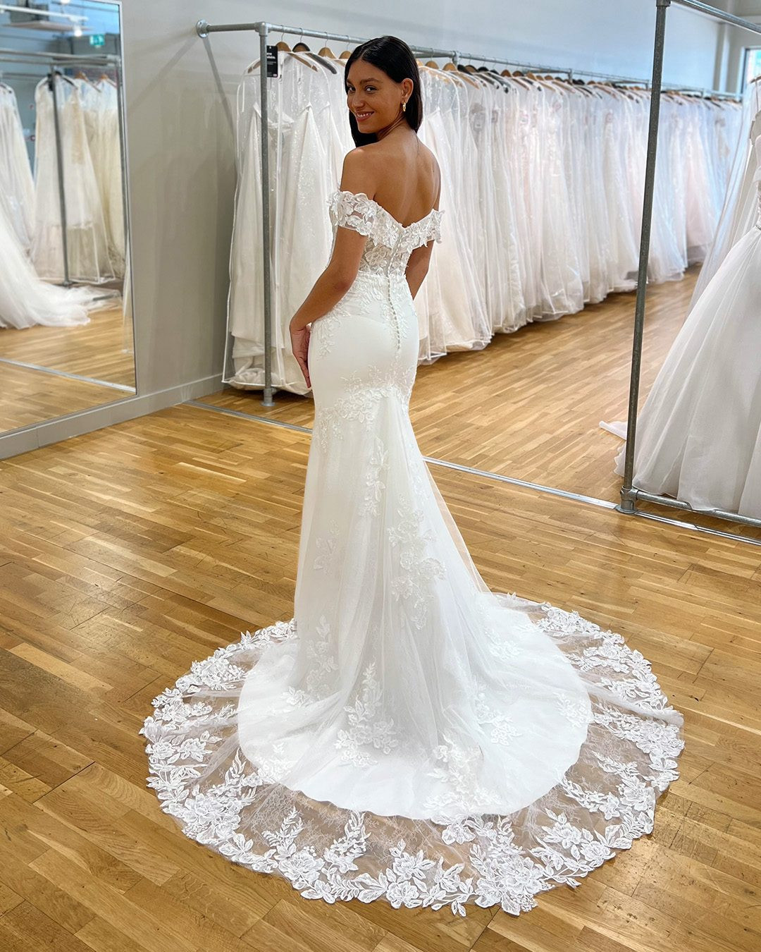 Mermaid Wedding Dresses Off Shoulder Lace Appliques Sweep Train Bridal Gowns