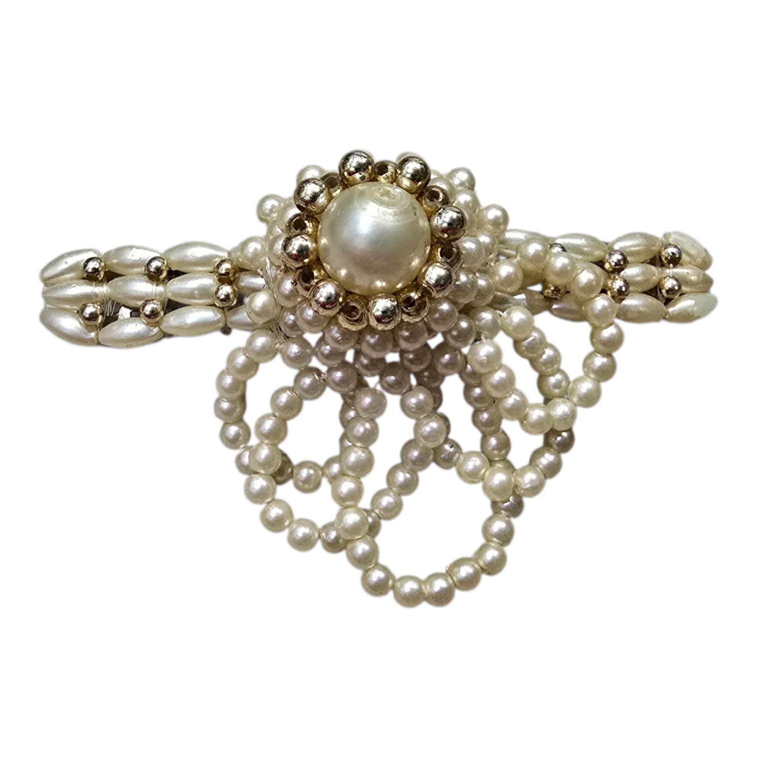 как выглядит Vtg 80s Hair Clip Beaded Faux Pearl Dangle Ivory Gold Barrette Wedding фото