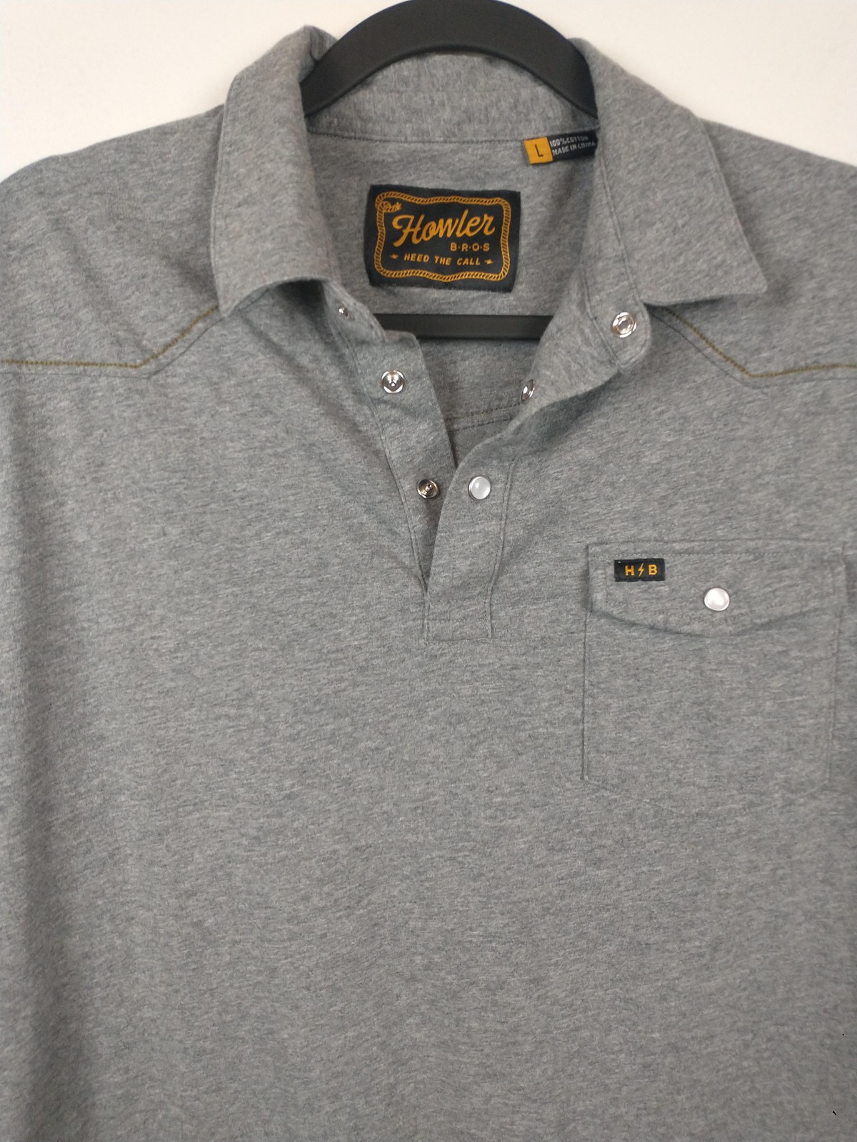 Howler Bros Shirt Mens Large Heather Gray Snap Polo Western Cotton Casual Top