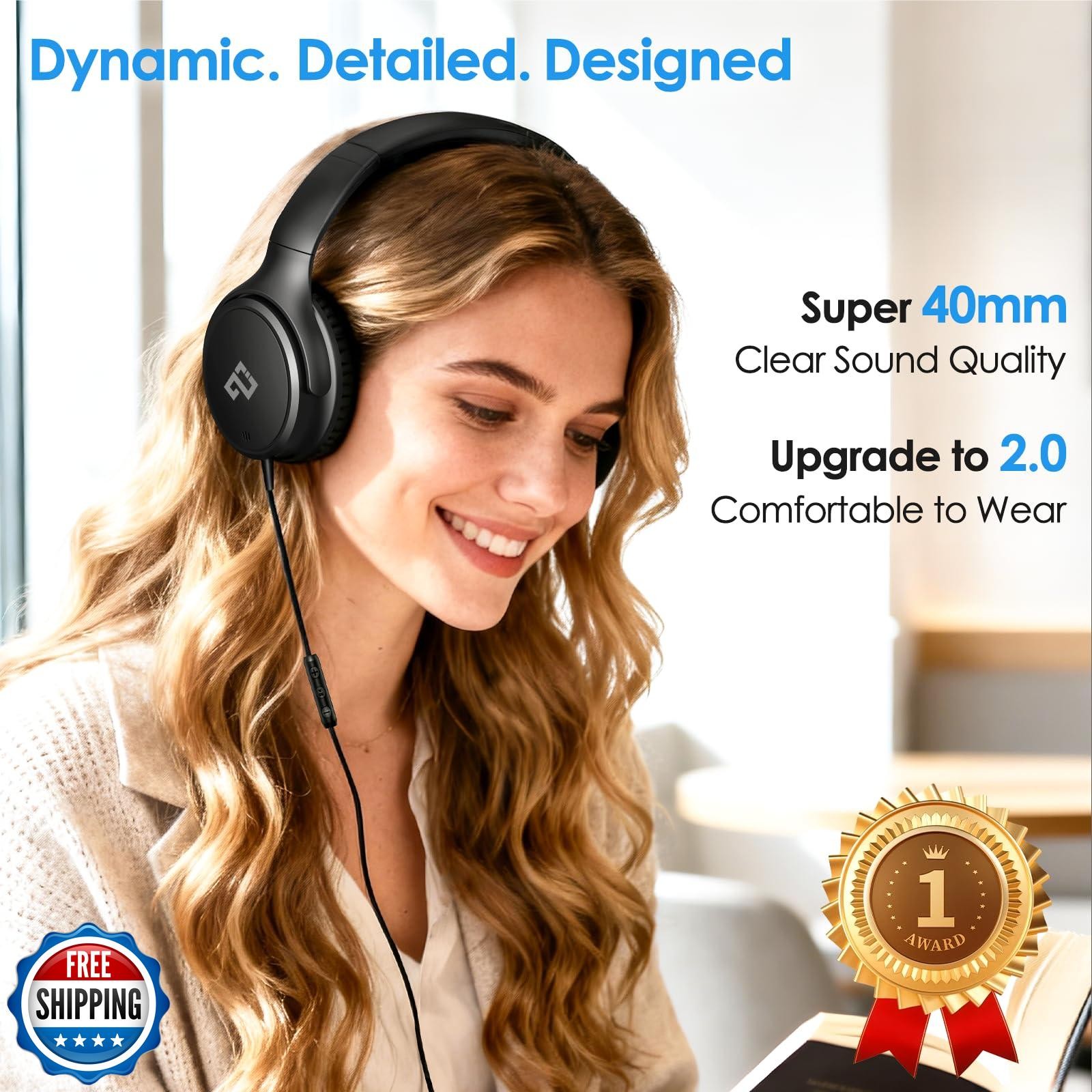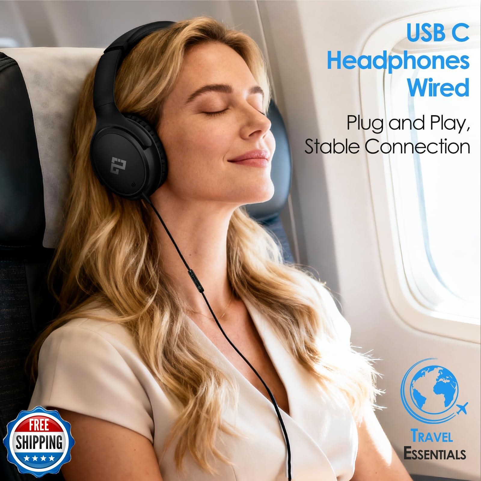USB C Headphones Wired Over-Ear Headphone with Microphone, Lightw