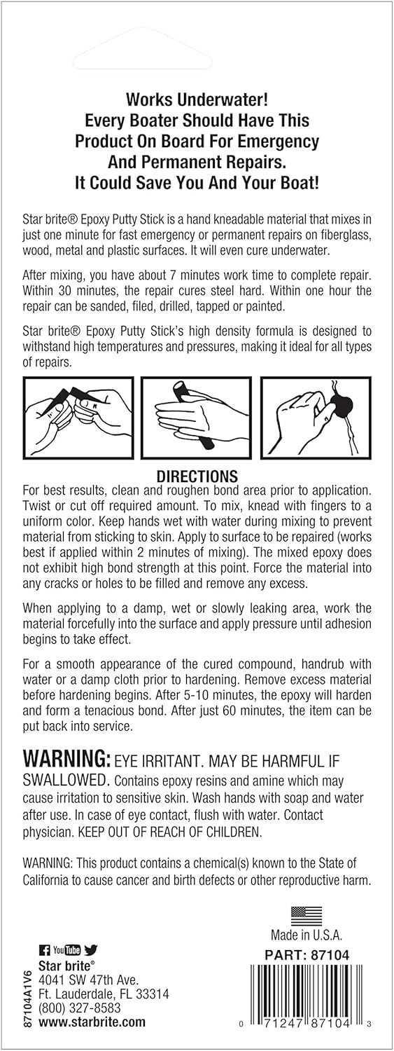 4 Oz Epoxy Putty Stick - Easy, Fast, Permanent Repairs Even Underwater - Repa...