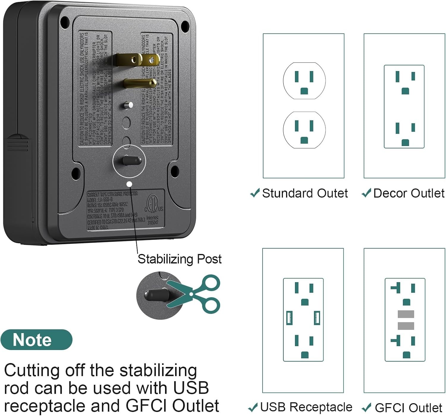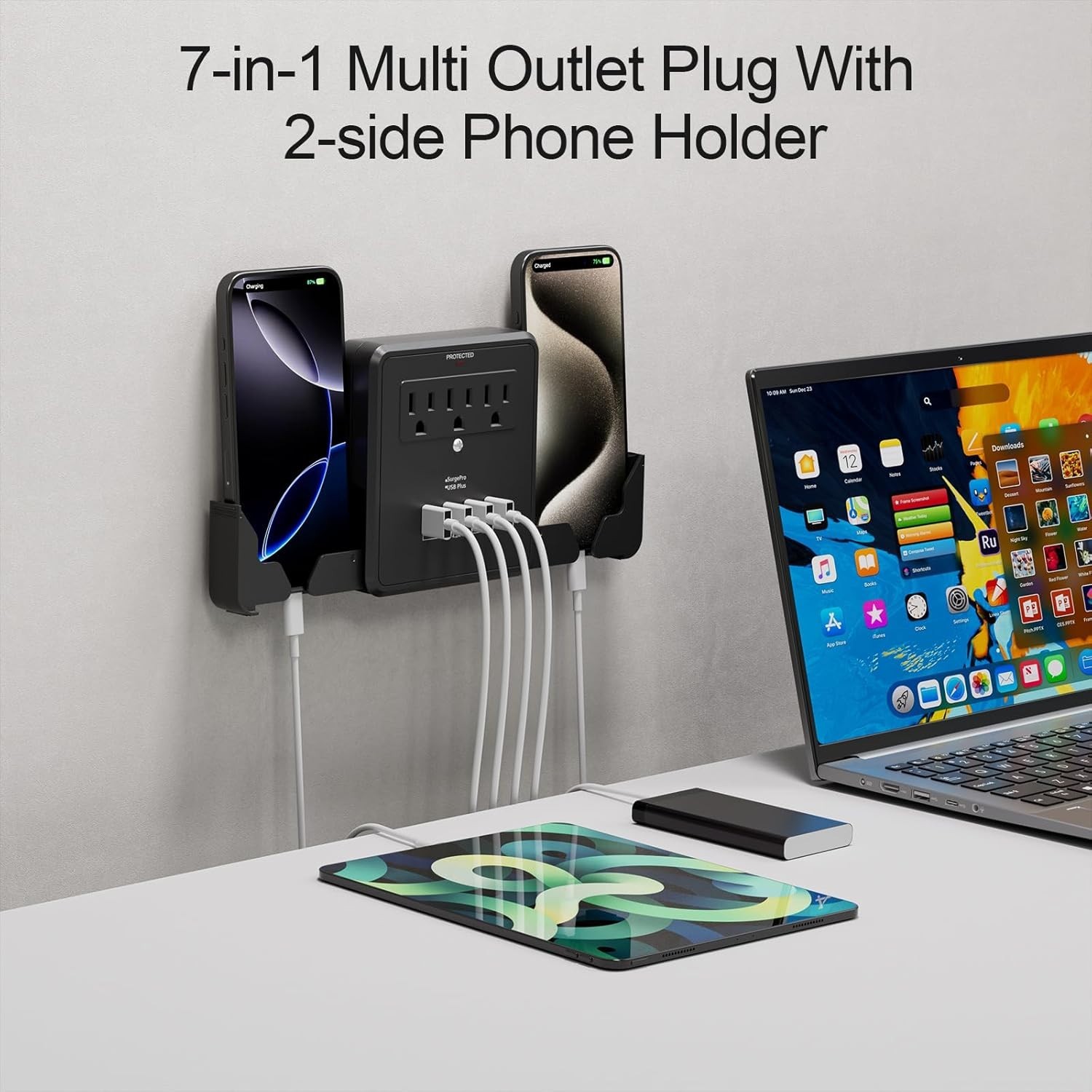 как выглядит Multi Plug Outlet Extender with USB,Surge Protector Wall Mount Plug,3 Outlets... фото