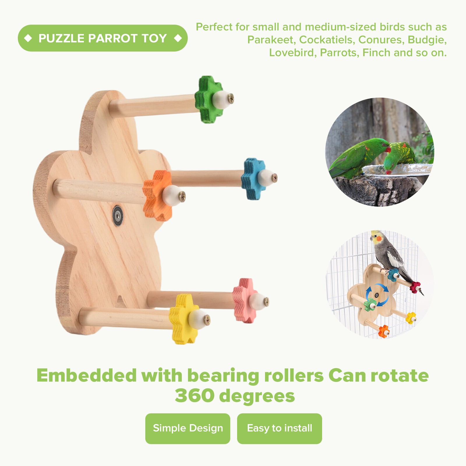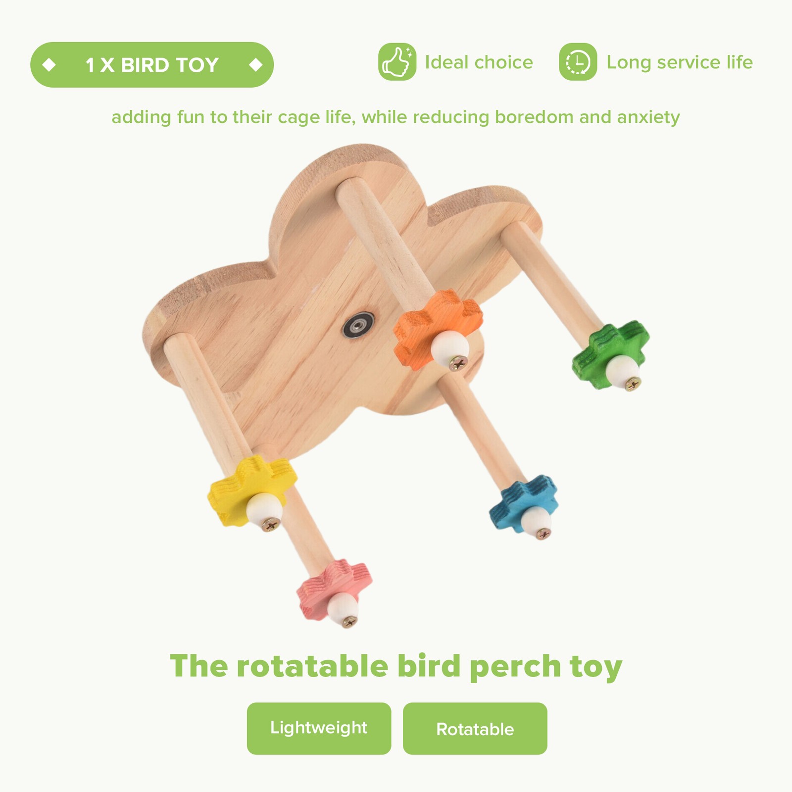 Bird Toy Rotating Perch Toy, Wooden Parrots Wheel Toy with Perches, Hanging9131