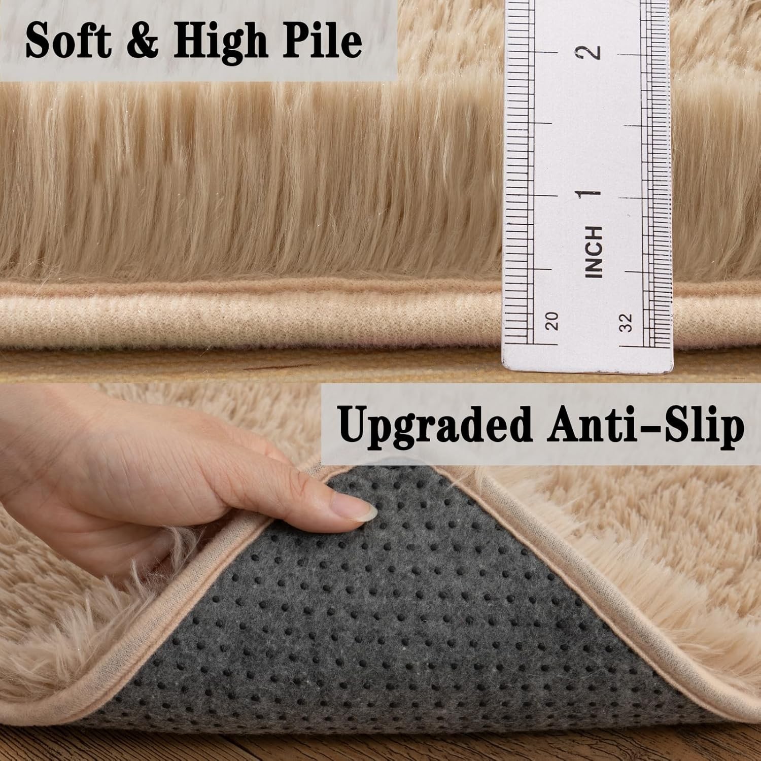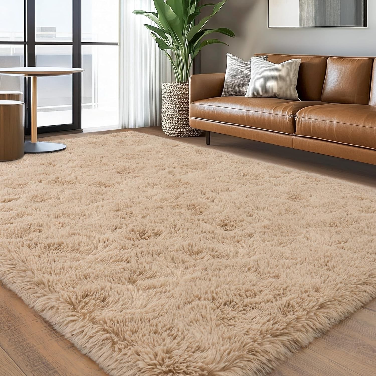 как выглядит Fluffy Area Rugs 8X10 Beige Soft Non-Slip Plush Carpet Mat for Living Room Floor фото