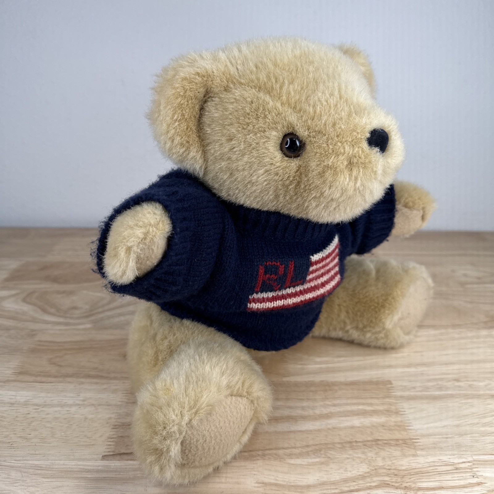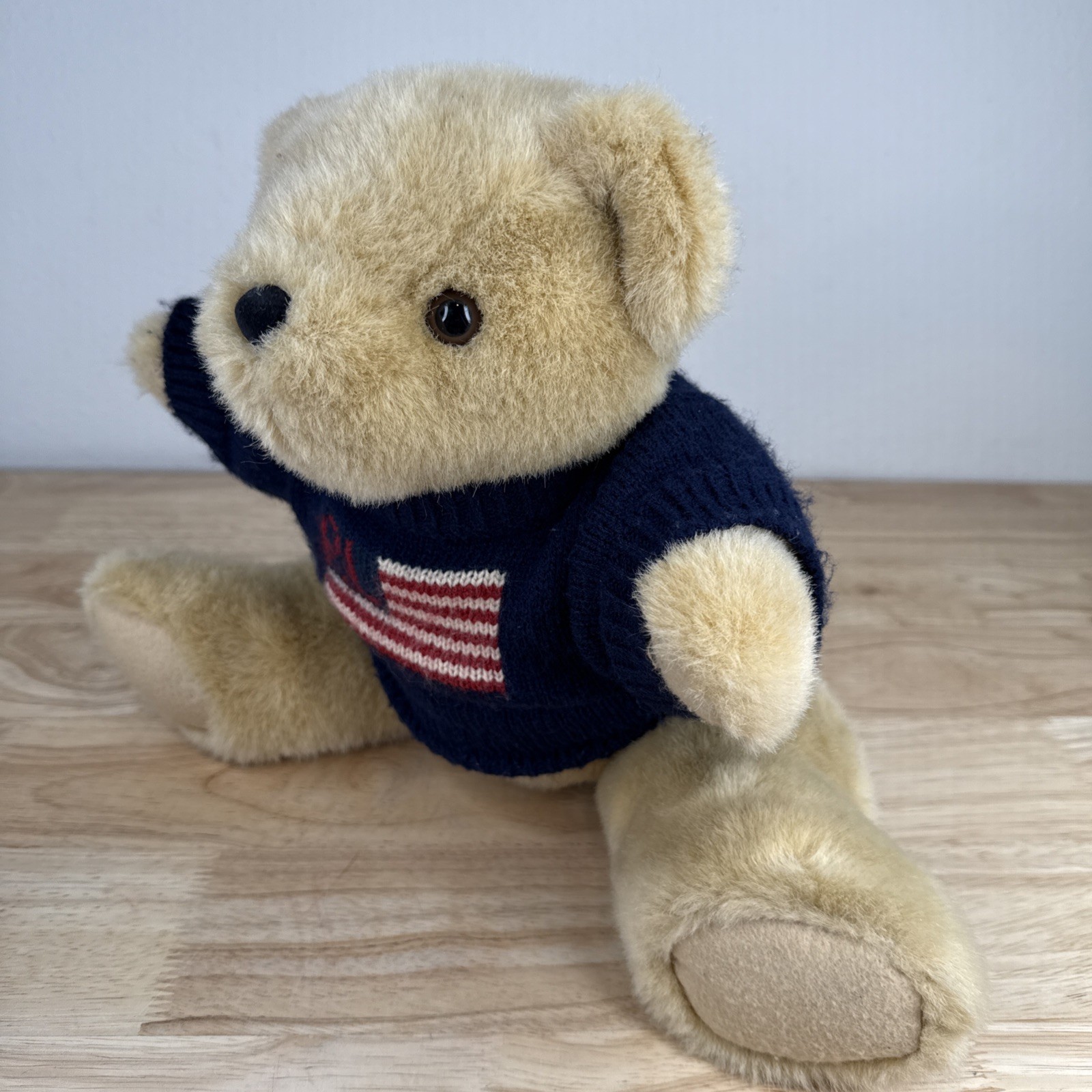 1996 Ralph Lauren Teddy Bear Plush Stuffed Toy Polo USA Flag Sweater VTG Animal