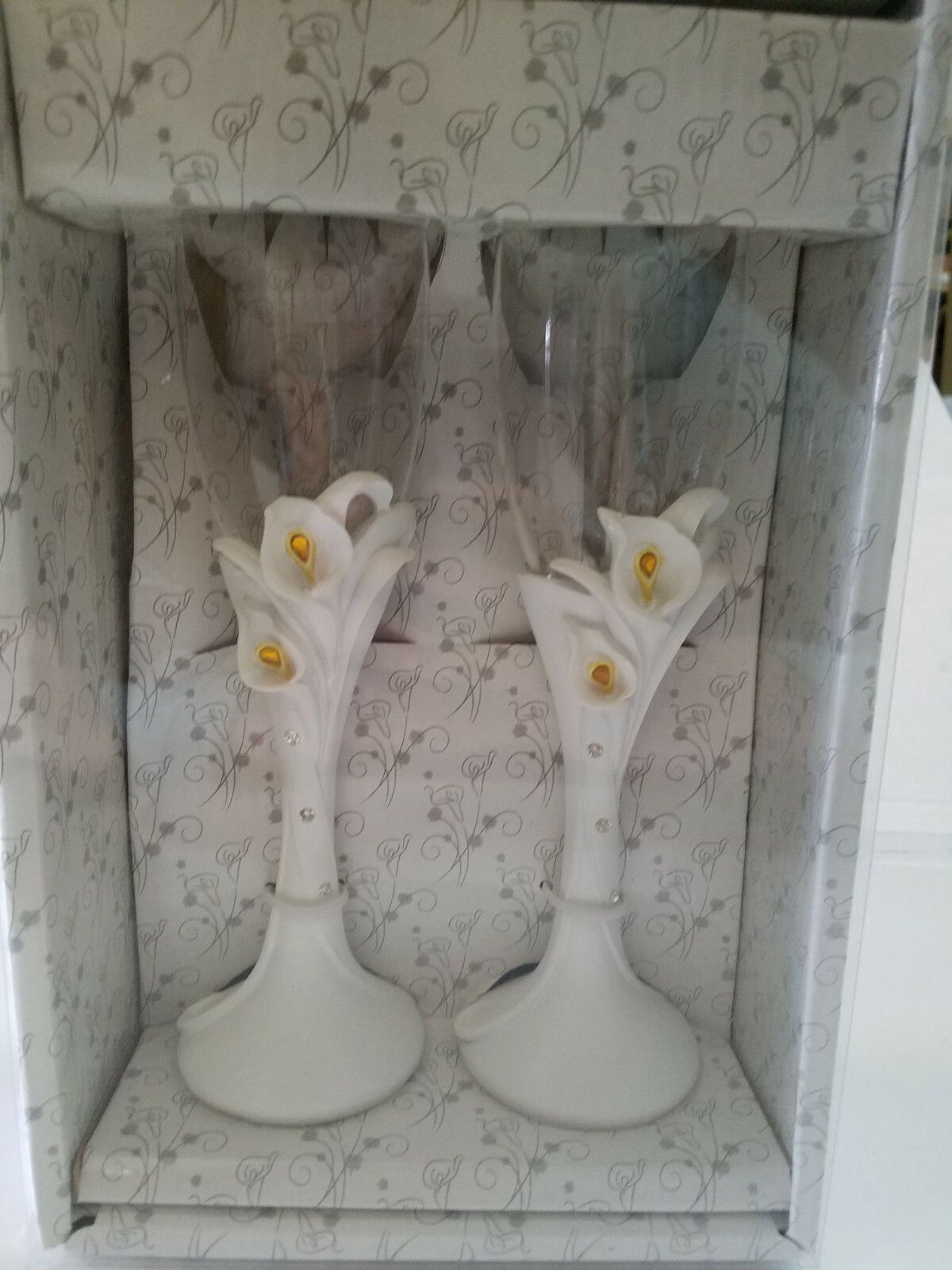 как выглядит Calla Lily Wedding Reception Toasting Flutes Champagne Glasses for Bride Groom фото