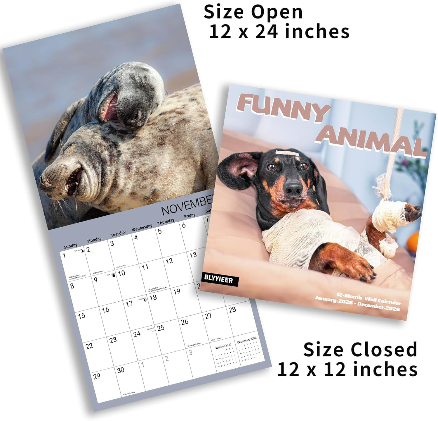 • 2026 Wall Calendar Funny Animal, 14 Months Hangable Wall Calendars, 12" x 24" O