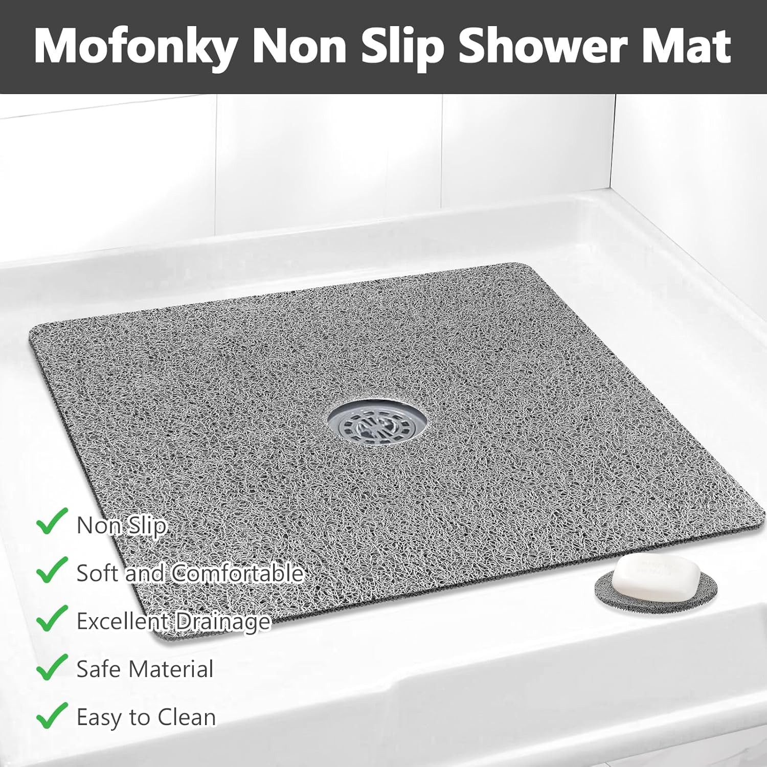Shower Mat Non Slip: 24 x 24 Inch Square Shower Mats with Drain Hole in Middle -