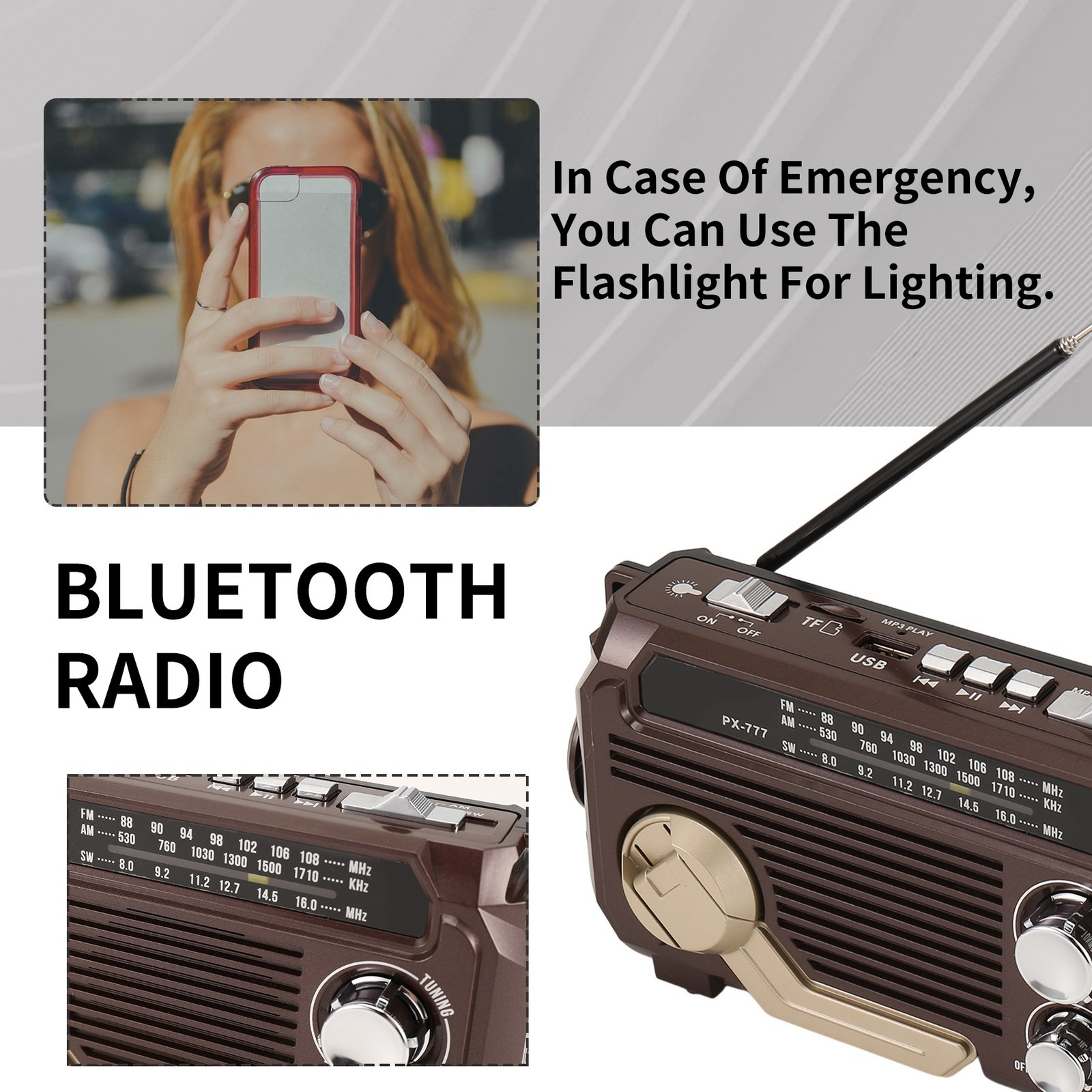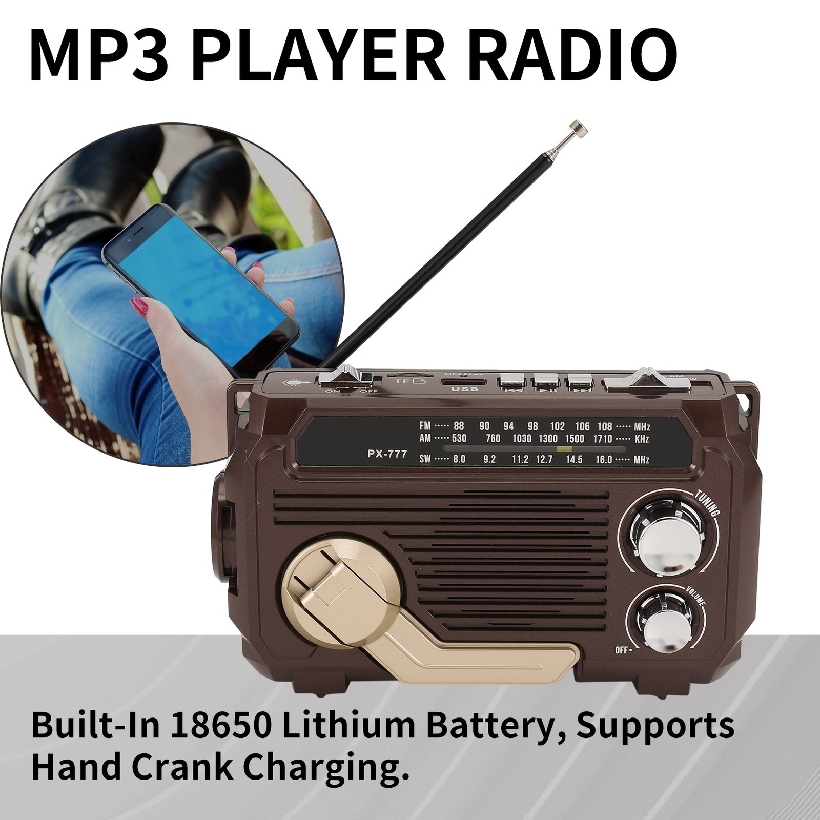 Radio Hand Crank Generation Solar Charging Three-Band Bluetooth Card MP36689