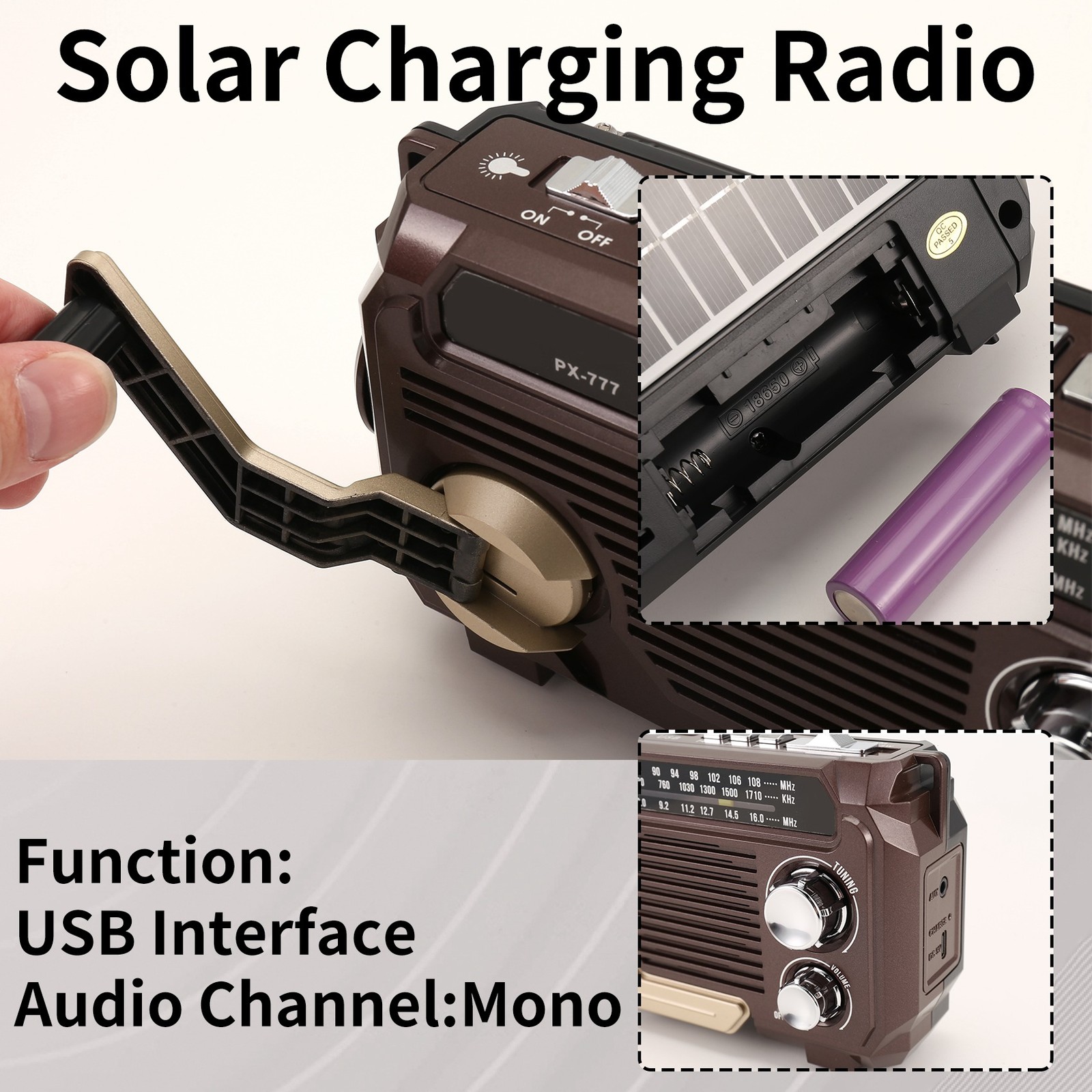 как выглядит Radio Hand Crank Generation Solar Charging Three-Band Bluetooth Card MP36689 фото