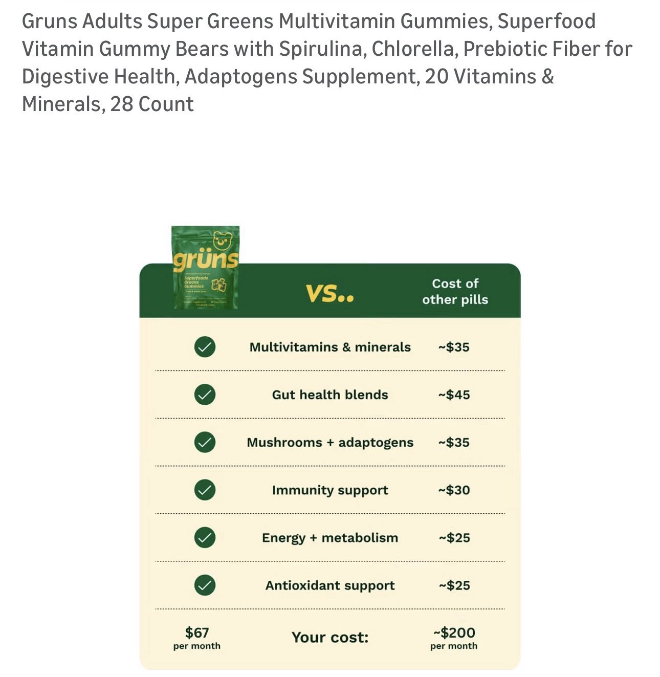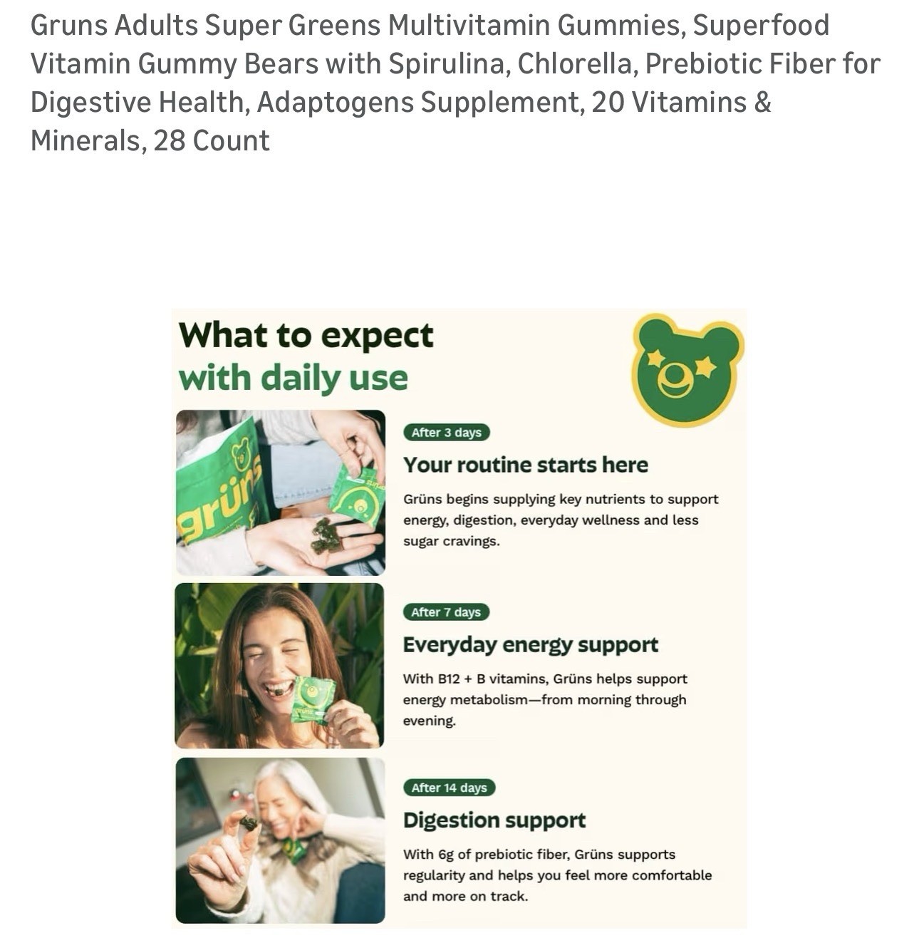 как выглядит Gr ns Super Greens Multivitamin Gummies Spirulina Chlorella B Vitamins 28 Count фото