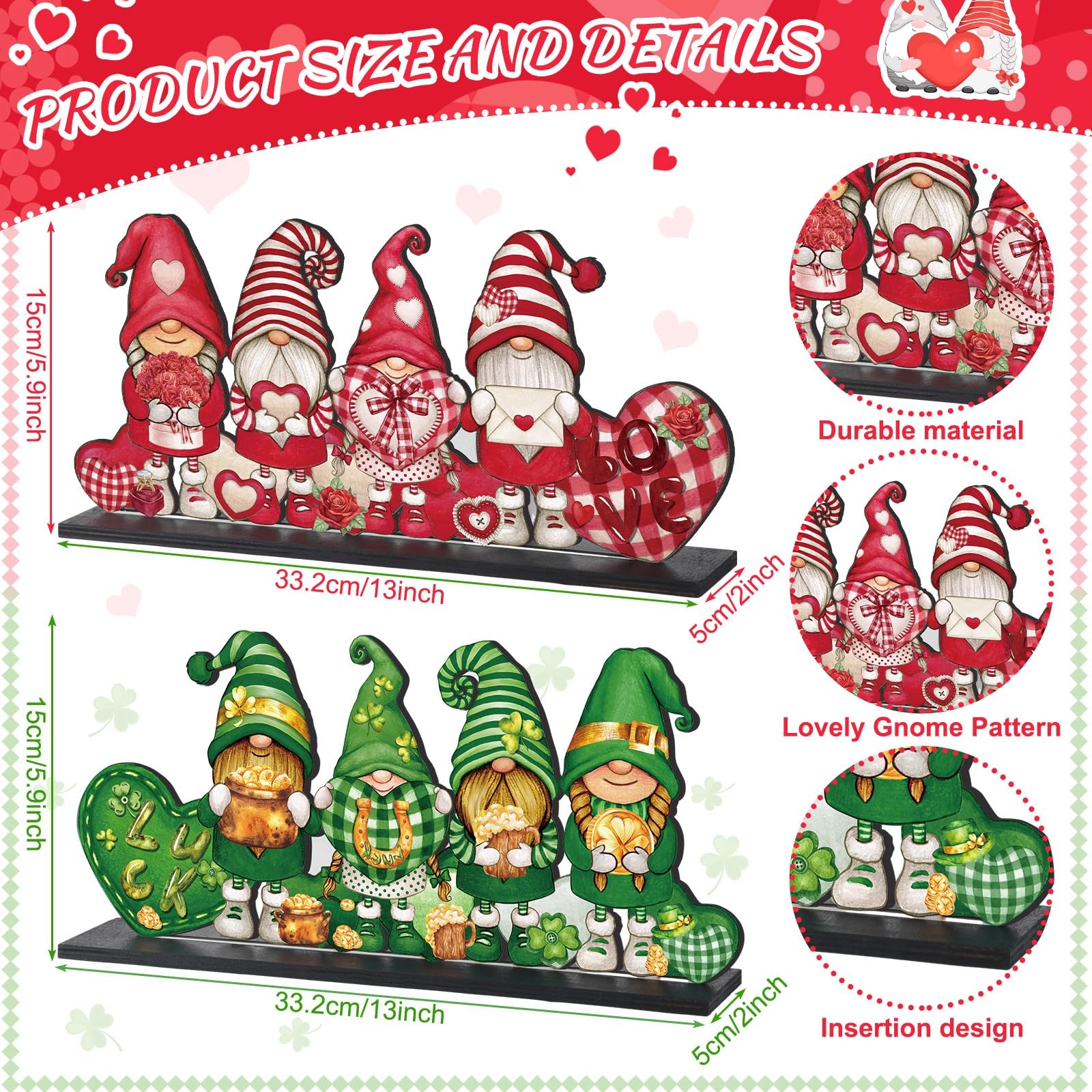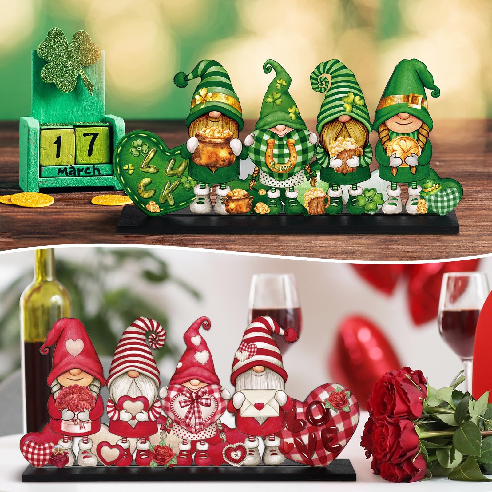 Valentine's Day and St. Patrick's Day Reversible Gnome Wood Signs Double Sided..
