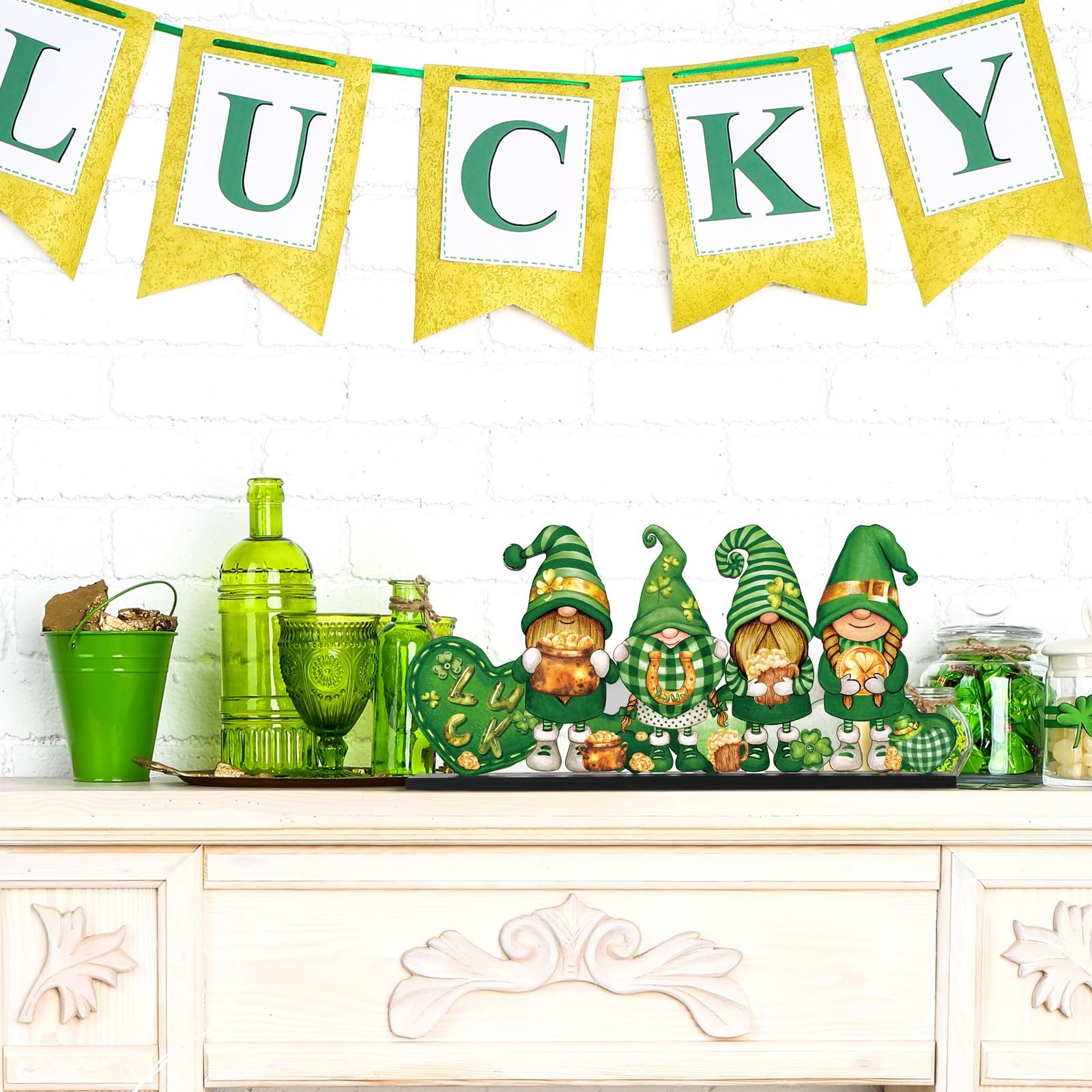 как выглядит Valentines Day and St. Patricks Day Reversible Gnome Wood Signs Double Sided.. фото