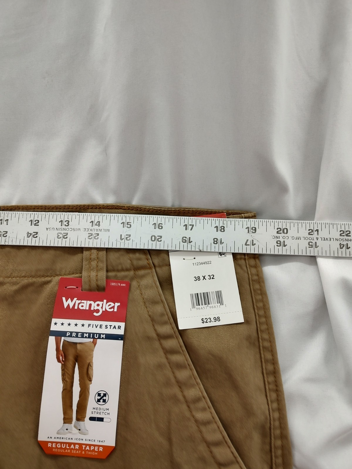 Wrangler Men s Regular Taper Khaki Cargo Pants Size 38x32 NWT