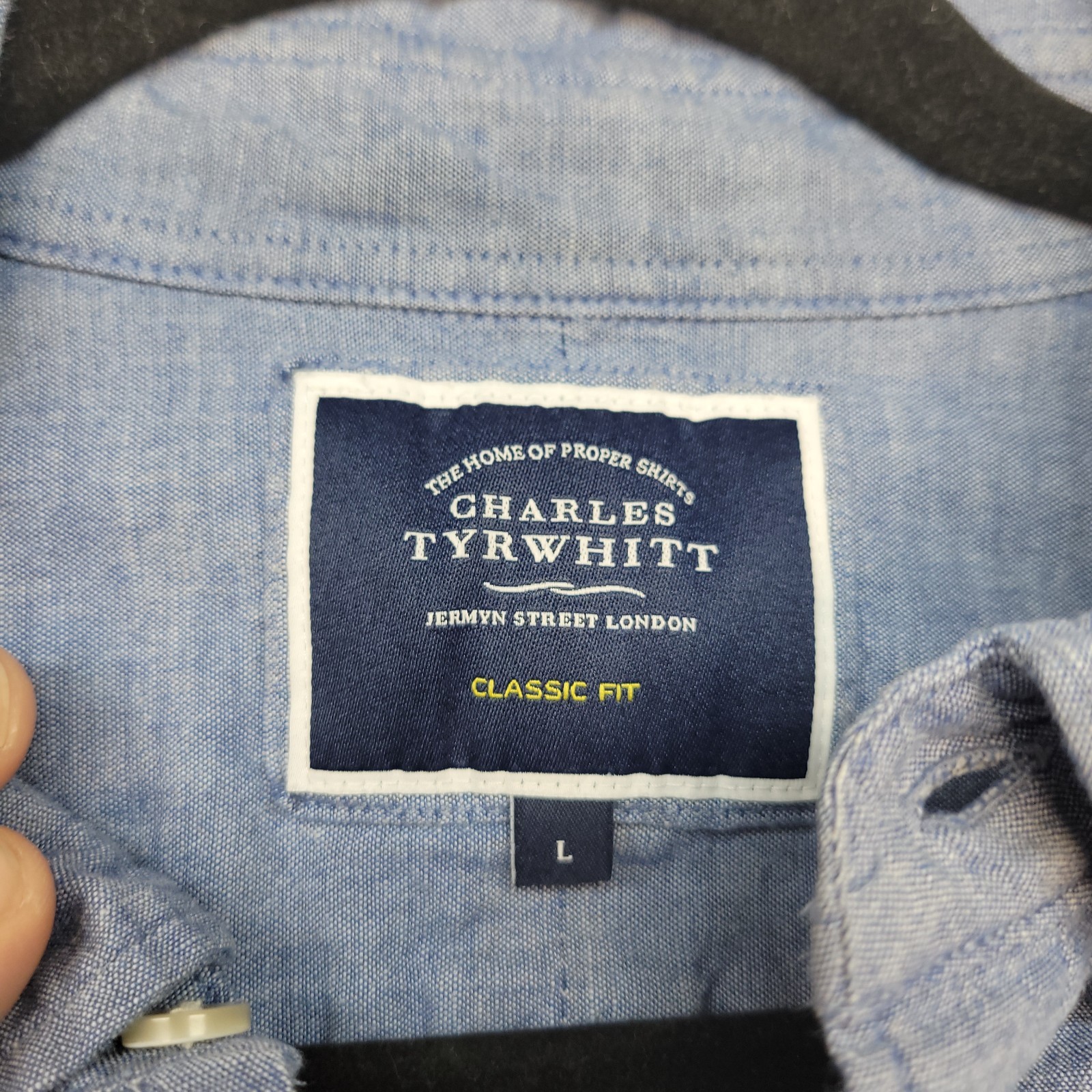 как выглядит Charles Tyrwhitt Shirt Mens Large Blue Chambray Classic Fit Button Down фото
