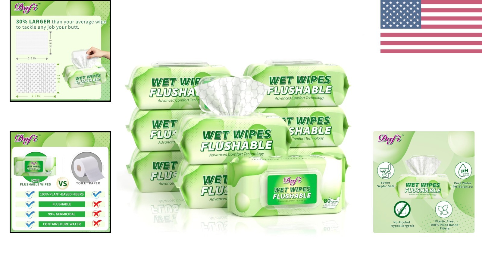 Особенности: Flushable, Biodegradable, Plastic-Free, Alcohol-Free, Hypoallergenic, pH Balanced, Moisture Retaining, Non-Woven, Soft, Tear-Resistant, Women Friendly, Baby Friendly