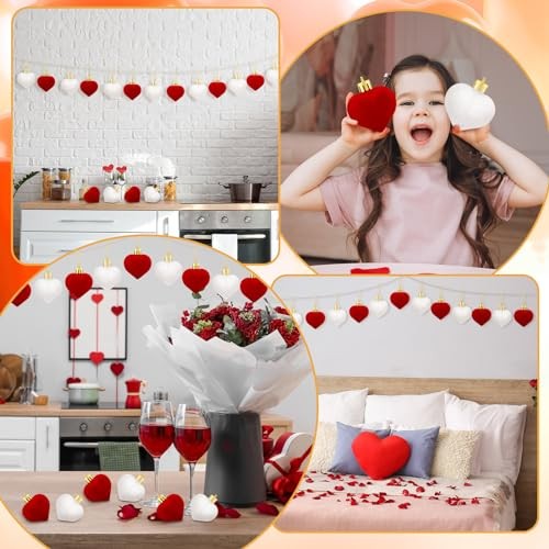как выглядит 12 Pcs Valentine s Day Velvet Heart Ornaments Red White Heart Shaped Baubles фото