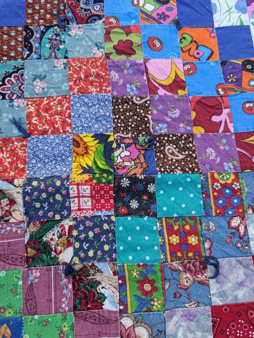• Vintage Beautiful Quilt Different Pieces Hand Woven size 100x86 inches
