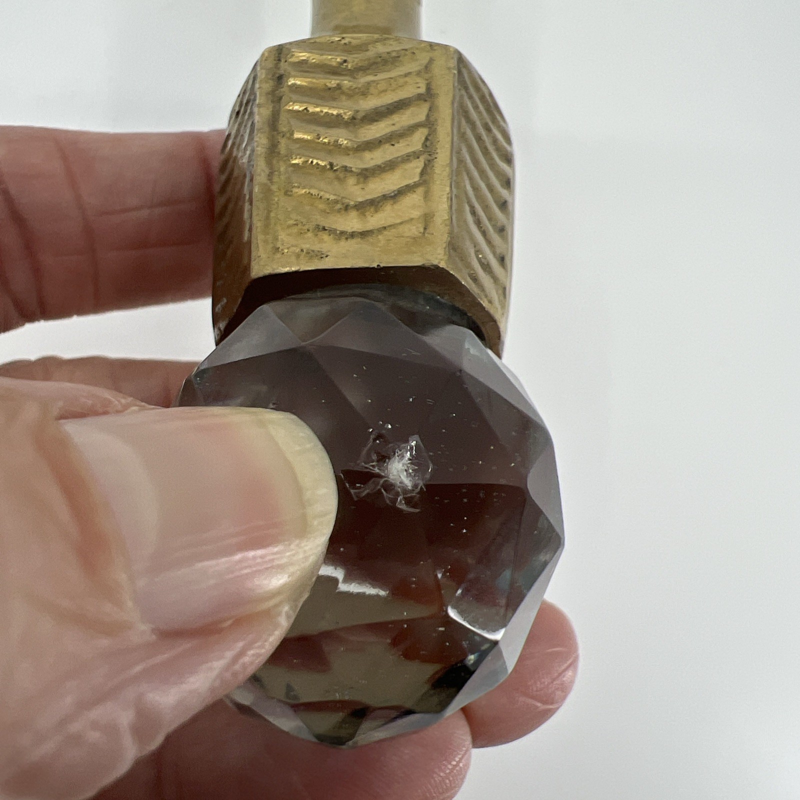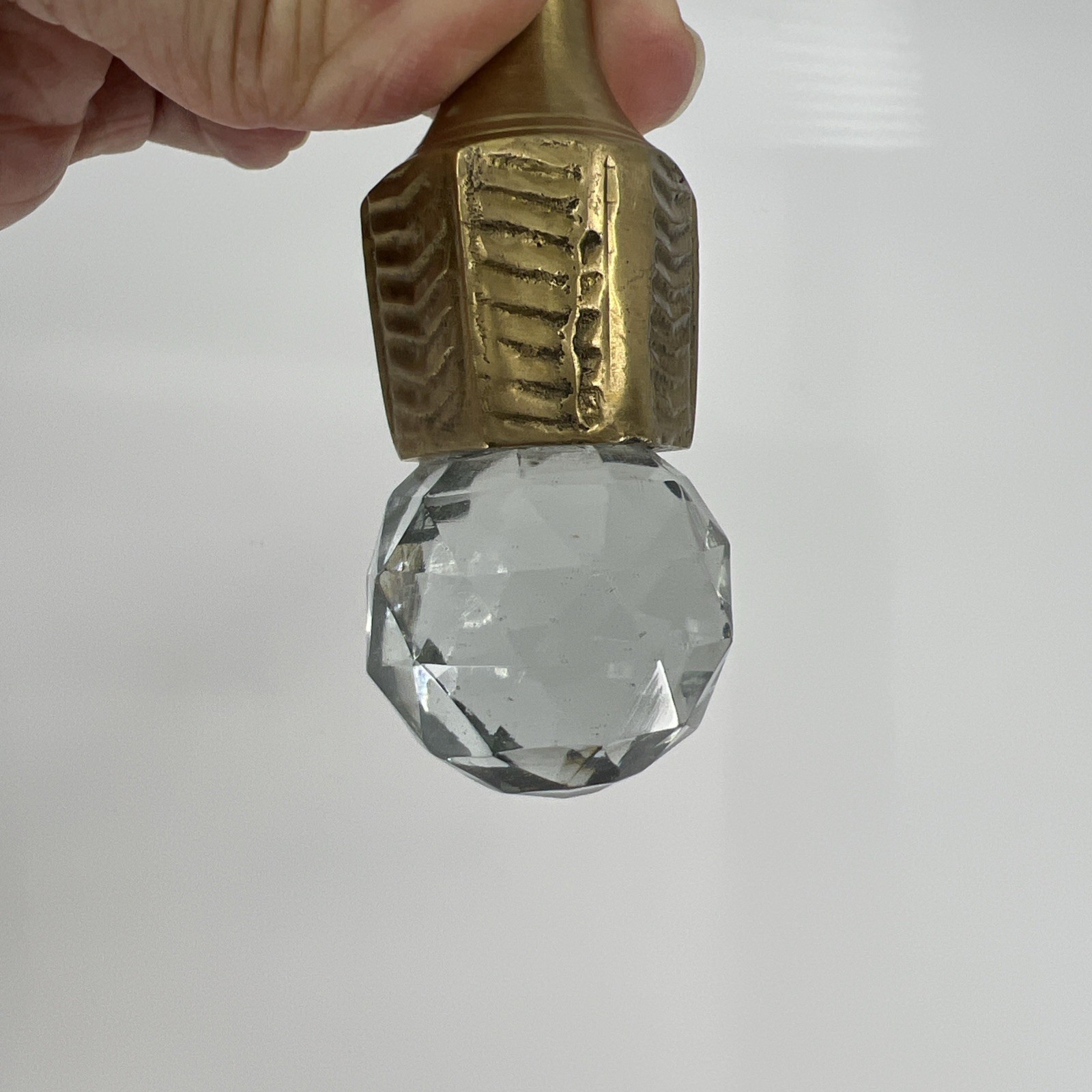 VTG Brass Hand Held Magnifying Glass Ornate Handle Crystal Base 10x 4appx