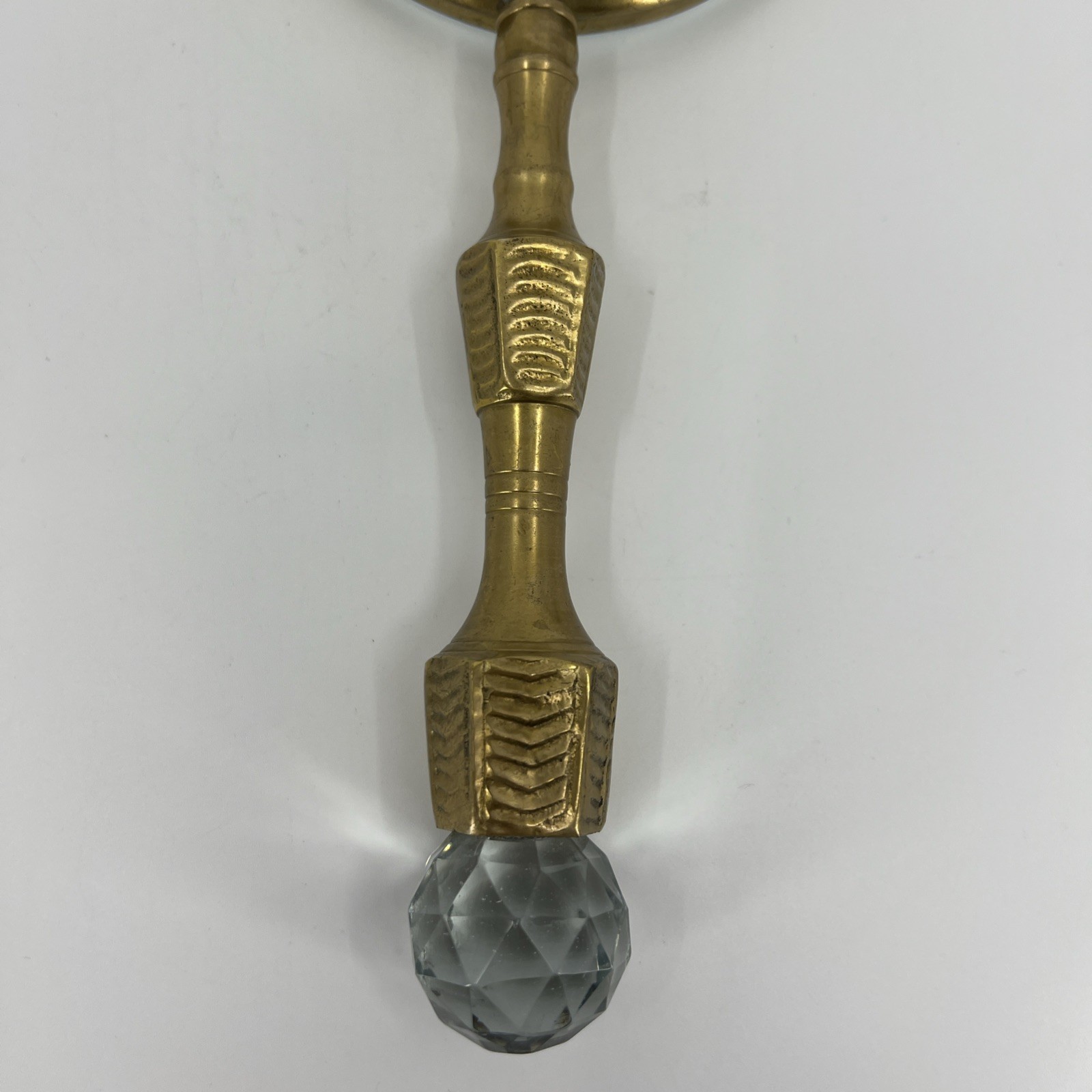 VTG Brass Hand Held Magnifying Glass Ornate Handle Crystal Base 10"x 4"appx
