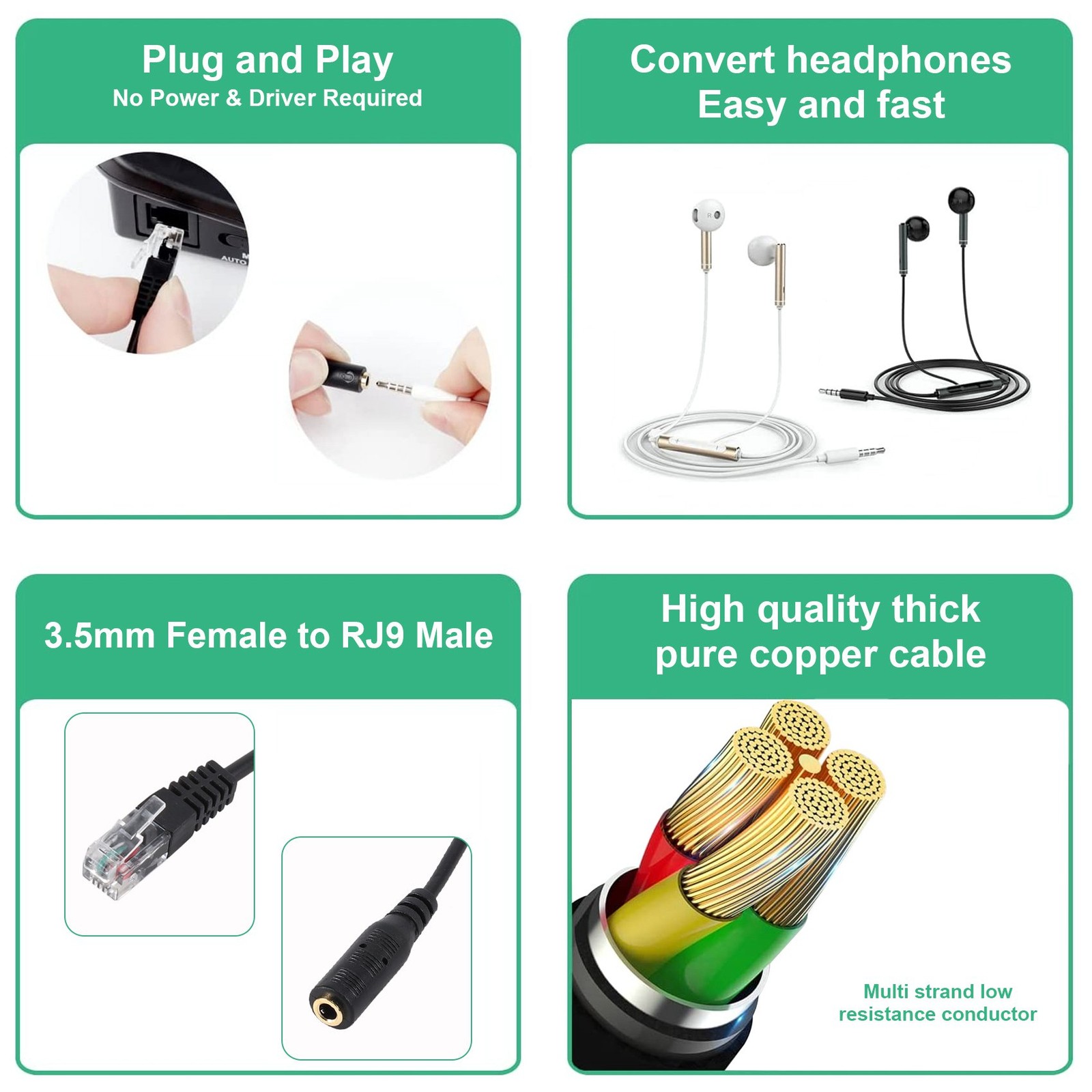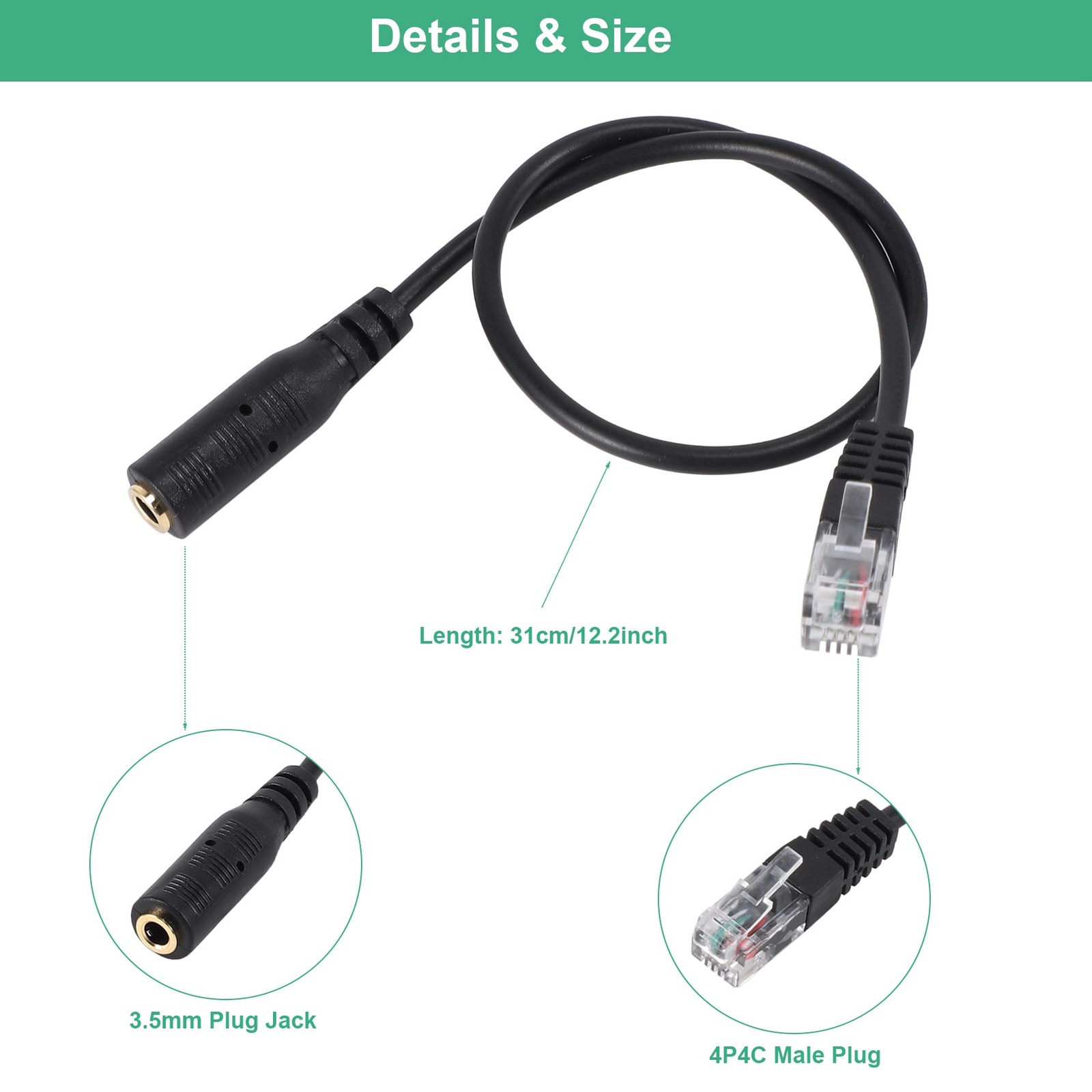 3.5mm Plug Jack to RJ9 for Headset to for Office Phone Adapter Cable B3G31556